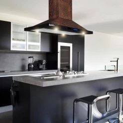 AKDY 36 in. Convertible Island Mount in Embossed Copper Vine Design Kitchen Range Hood with Lights