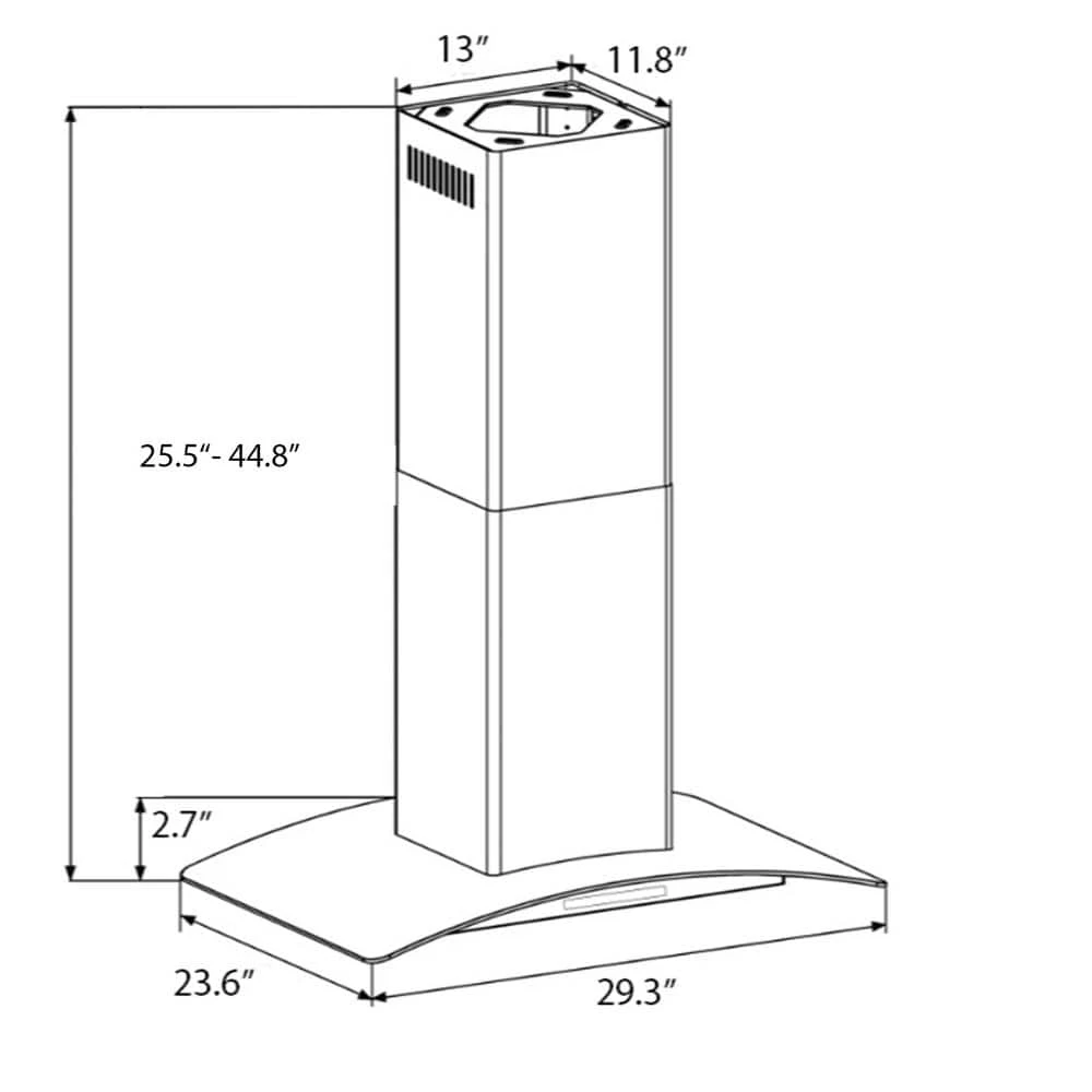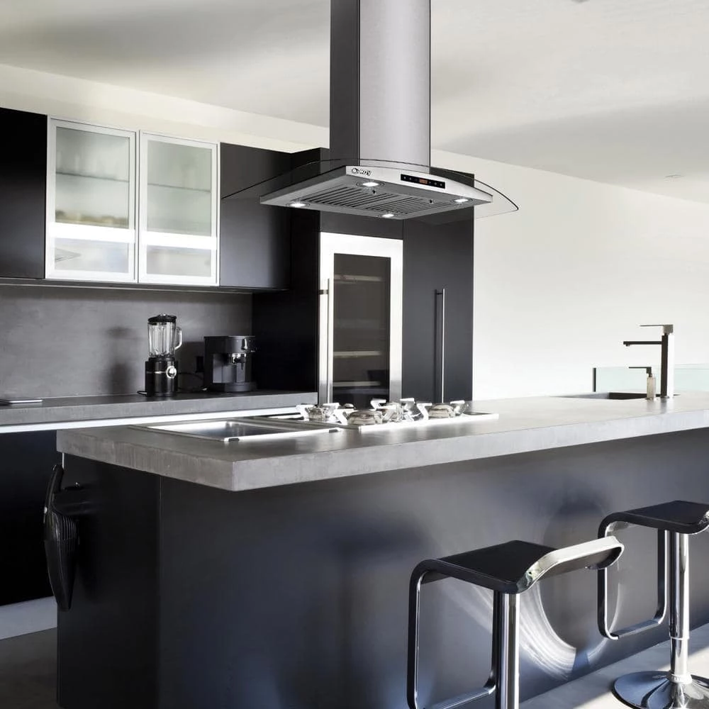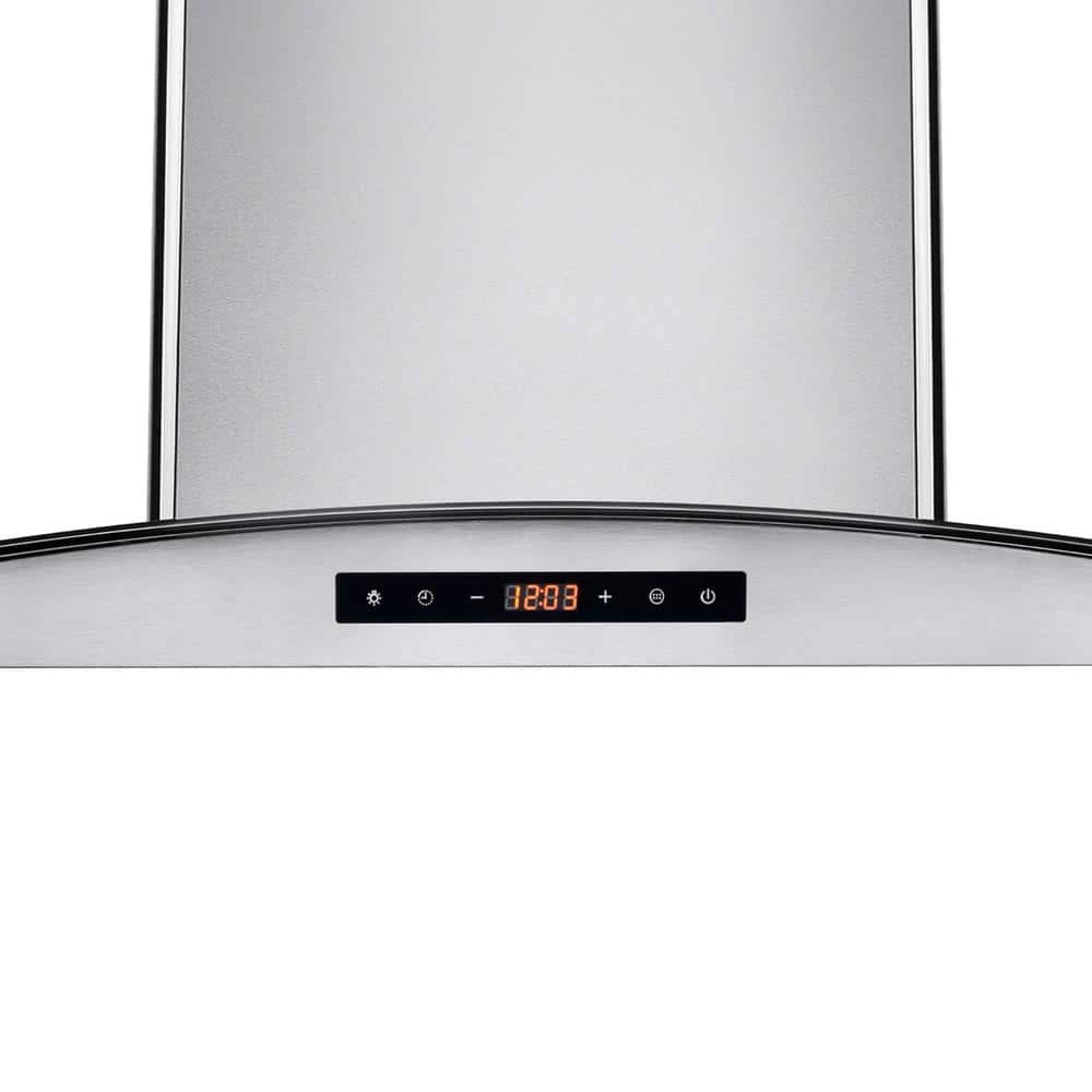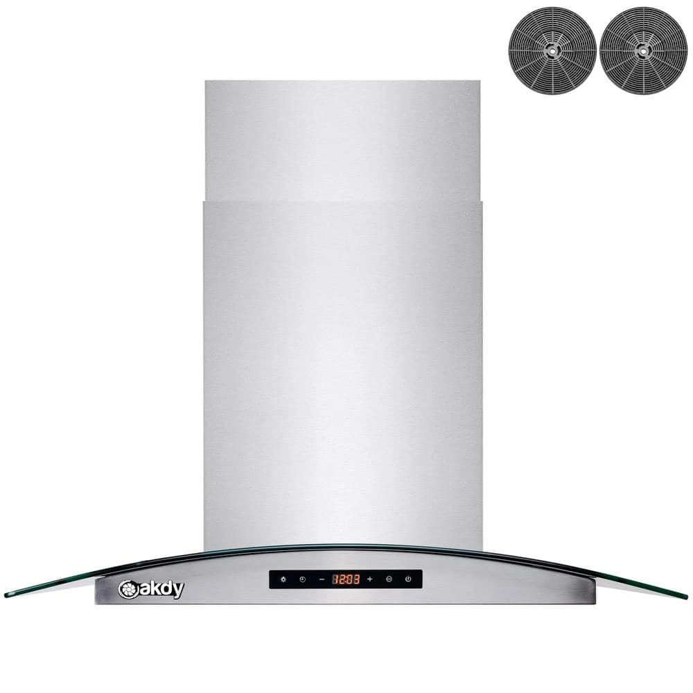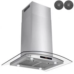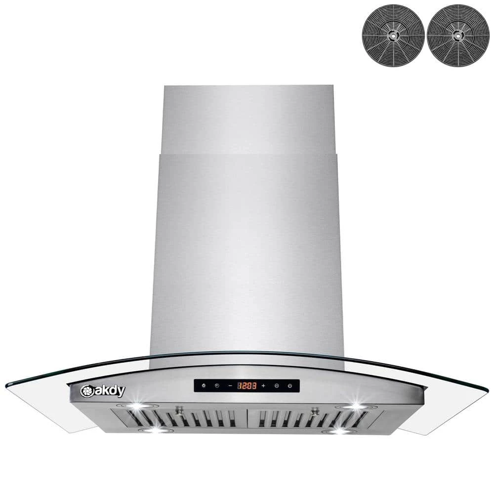 This sleek, elegant AKDY 30 in. island mounted canopy range hood is undeniably impressive with its modern contemporary features. Easy to use Touch Control on the front, allow you to control the fans speed up to three variants at 343 CFM. This keeps your kitchen fresh from unwanted odors lingering. 2 baffle filters keep oil particles and the baffle filters are detachable an easy to clean. 4 White LED lights keep your cooking area well-lit when cooking during events, gatherings, or other dark conditions. For ductless recirculating installation, a carbon filter kit is included(CF0011).