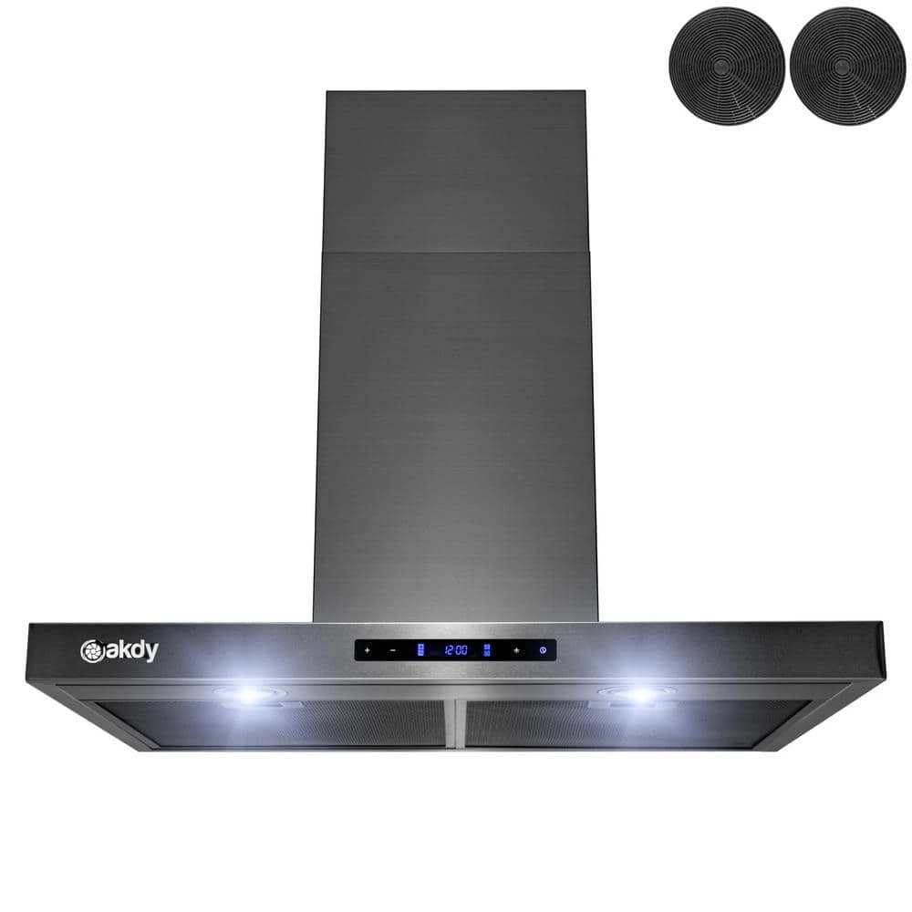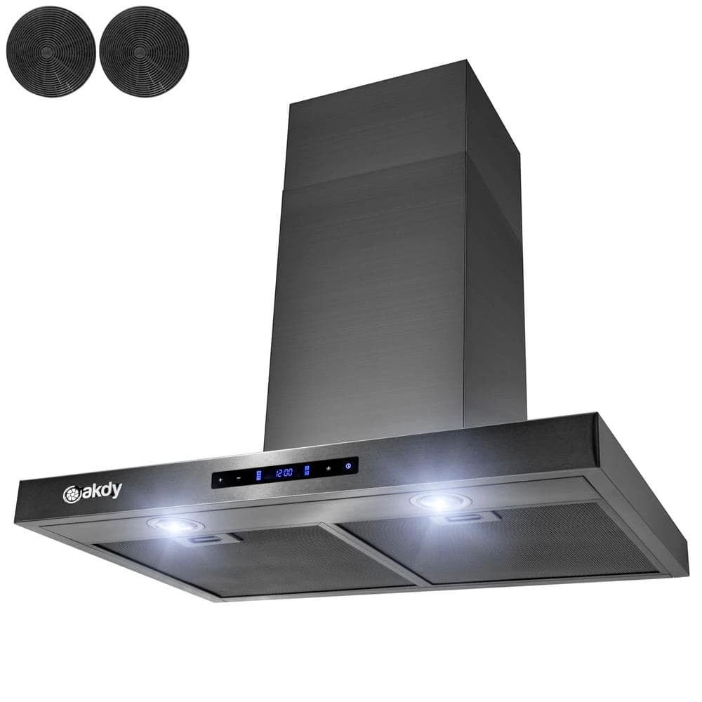 No matter if a professional chef or an amateur cook, you definitely need a highly performant range hood that will ensure premium ventilation, leaving you with a fresh kitchen. The 30 in. black stainless steel wall mount range hood has a powerful motor that will ensure the airflow needed when cooking. The reason to purchase this range hood is because its efficient, elegant, and very practical. The AKDY Wall mount range hood comes with useful LED lights, while the mesh filters are easy to disinfect in the dishwasher, getting rid of all the grease and smoke that might block the airflow. Convertible for ventless use with included carbon filter kit(CF0015).