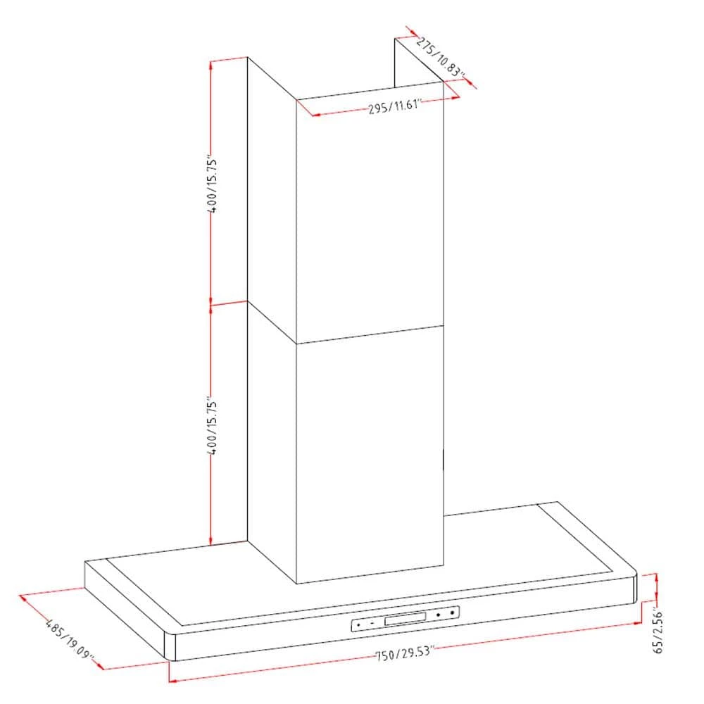 - Wall mount range hood includes decorative chimney compatible with 8 to 8.5 ft.
