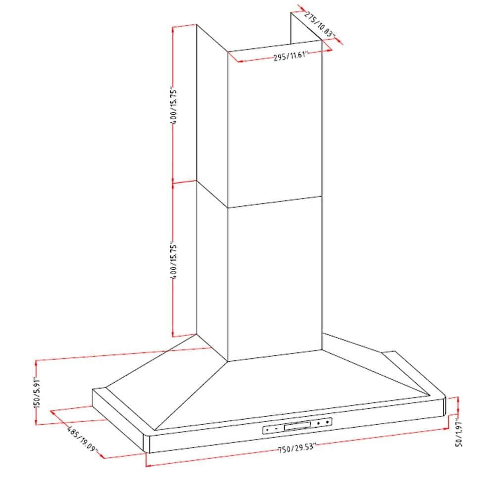 - Wall mount range hood includes decorative chimney compatible with 8 to 8.5 ft. ceilings