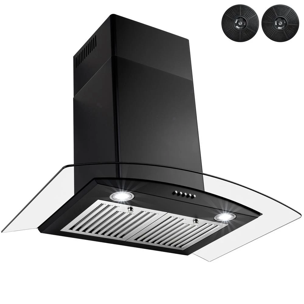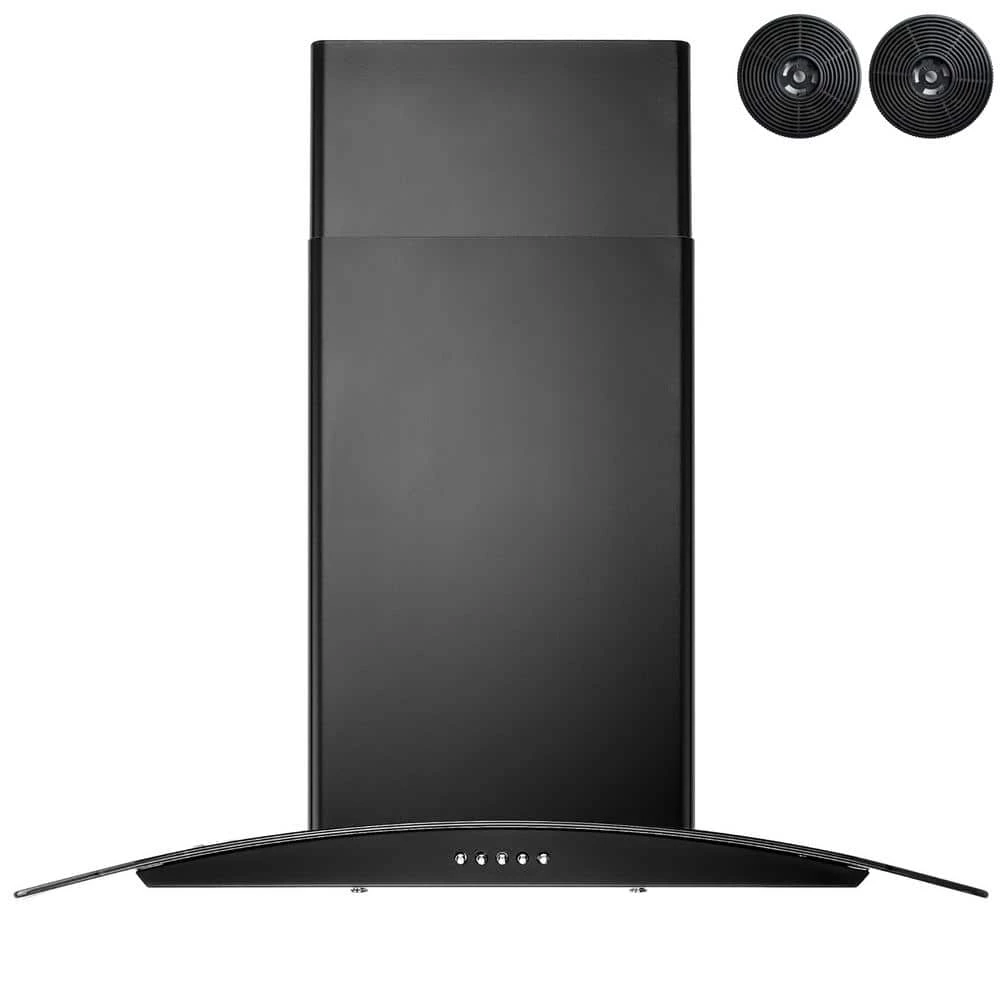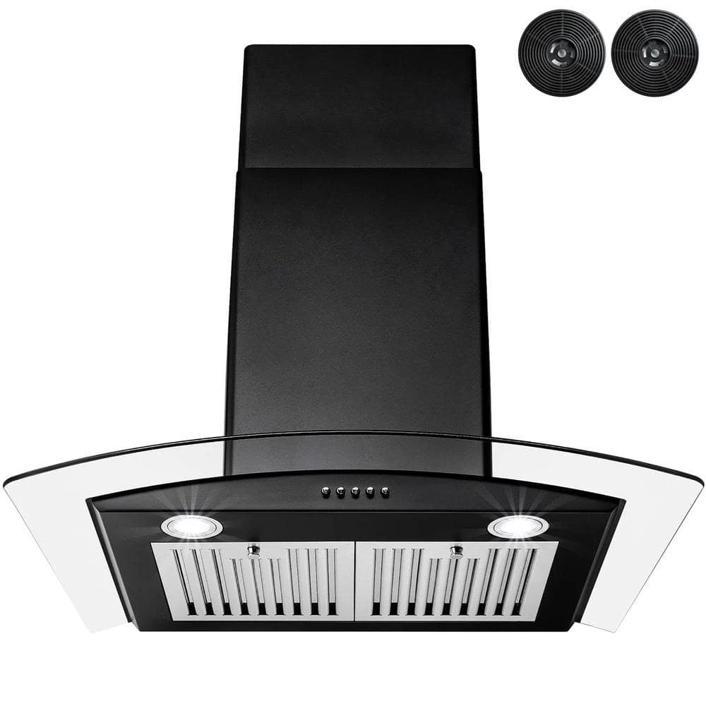 This flawless, modern, and incredible AKDY 30 in. Wall mount range hood features amazing Eurocentric style with a beautiful black painted stainless steel finish. Push controls line the front of the range hood offering two LED lights, and a three-speed fan at 210 CFM. The below 60 dB low noise level gives you better ambience for those moments when you are enjoying a dinner with your family or significant other. Two baffle filters cover the bottom to trap any unwanted grease to keep your kitchen fresh. For ductless recirculating installation, a carbon filter kit is also included (CF0014).