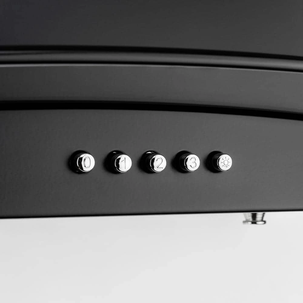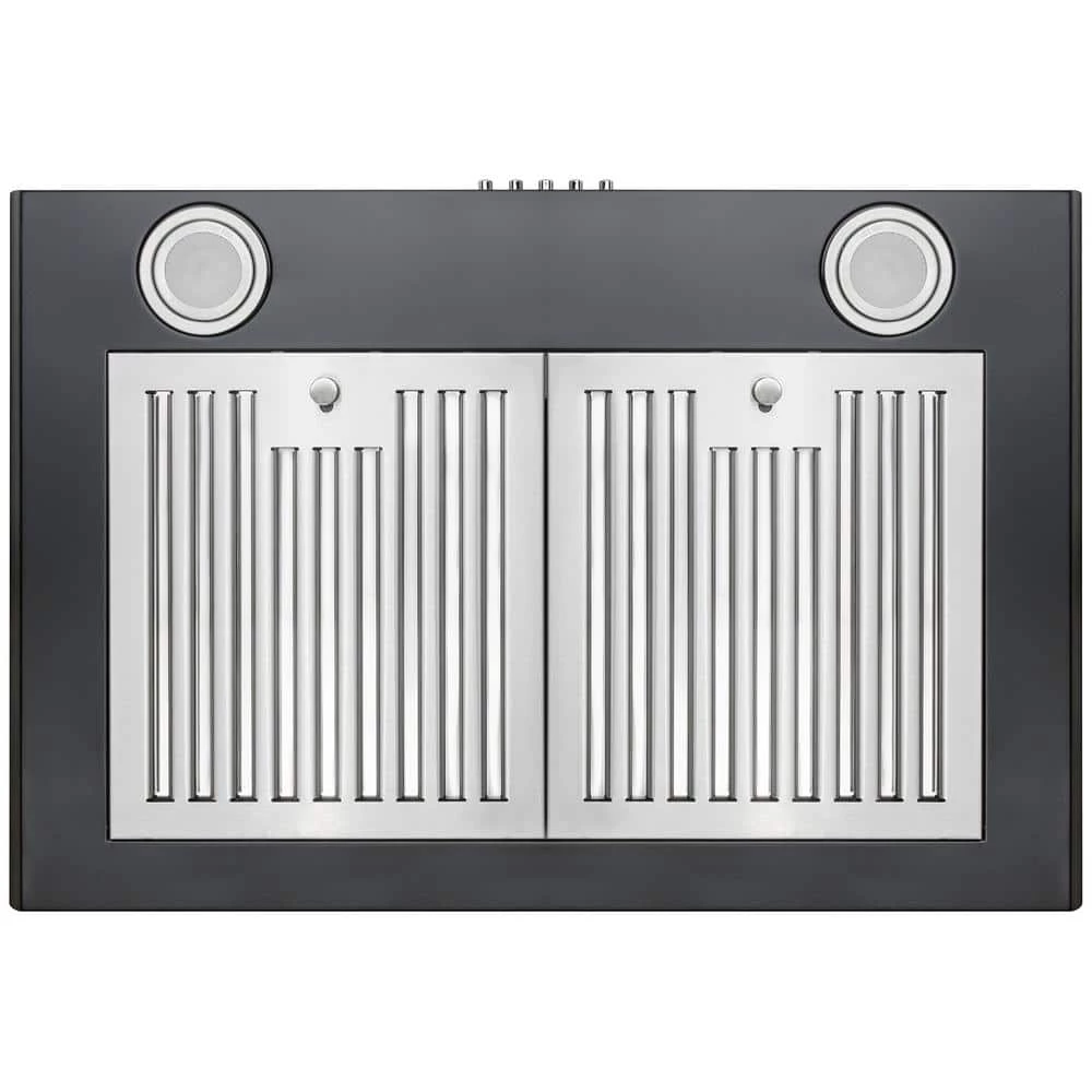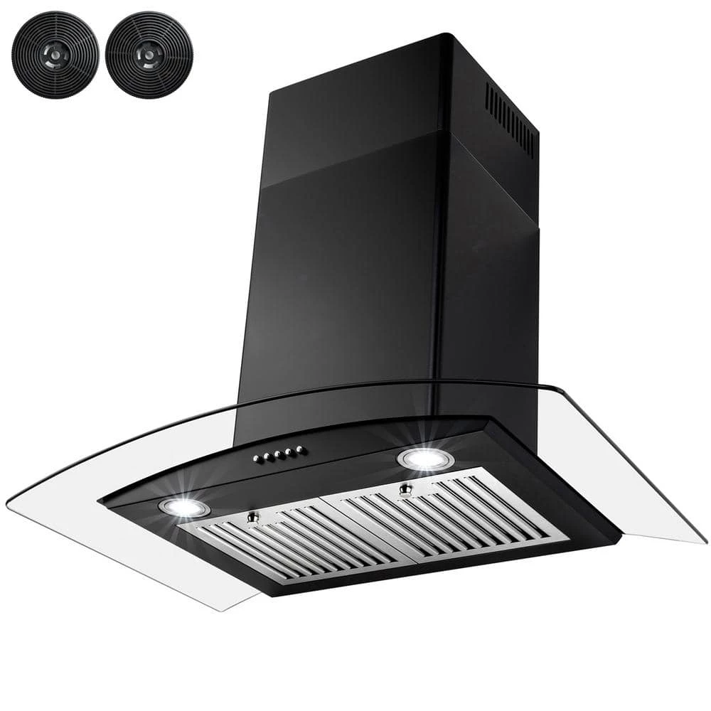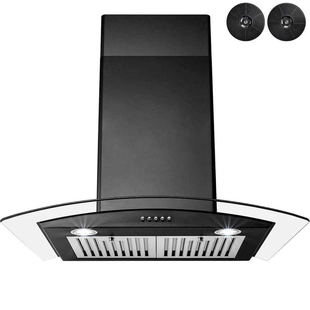 This flawless, modern, and incredible AKDY 30 in. Wall mount range hood features amazing Eurocentric style with a beautiful black painted stainless steel finish. Push controls line the front of the range hood offering two LED lights, and a three-speed fan at 210 CFM. The below 60 dB low noise level gives you better ambience for those moments when you are enjoying a dinner with your family or significant other. Two baffle filters cover the bottom to trap any unwanted grease to keep your kitchen fresh. For ductless recirculating installation, a carbon filter kit is also included (CF0014).