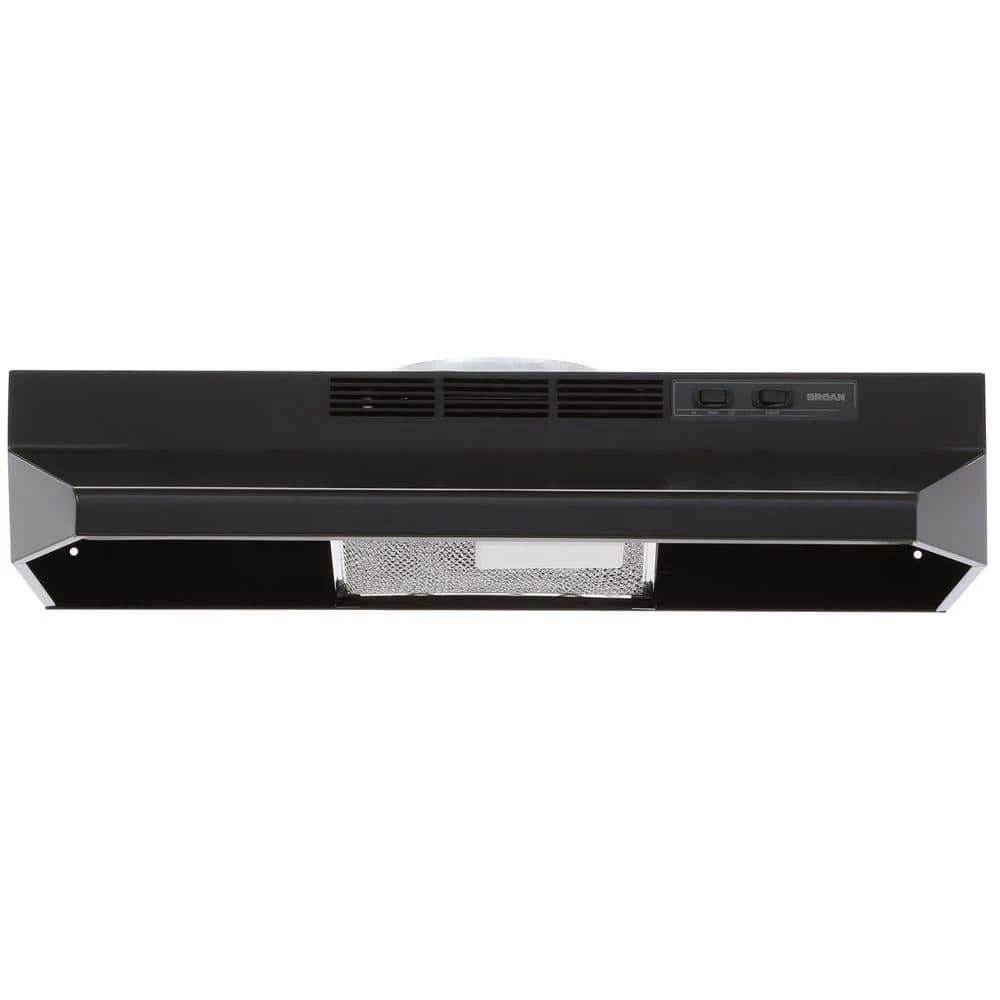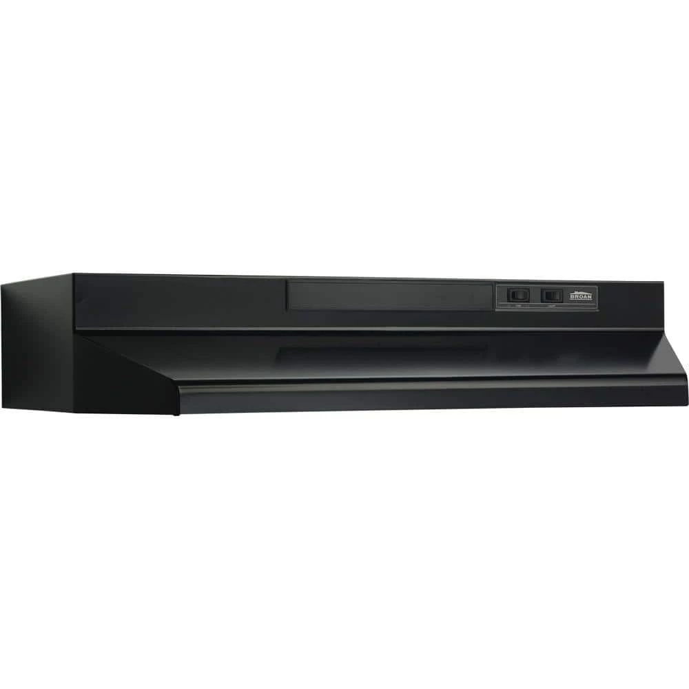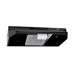 The F40000 series provides installation flexibility with 4-way convertibility to fit virtually all applications. The hood is designed for under cabinet use and installs as 3-1/4 in. x 10 in. ducted opening with vertical or horizontal ducting; or 7 in. round vertical ducting or as non-ducted with air recirculation. The hood is equipped with a 230 MAX Blower CFM designed for years of trouble free service, an easy to clean grease filter, a protective lamp lens that distributes light evenly over the cook-top, and control switches for fan speed and light activation
