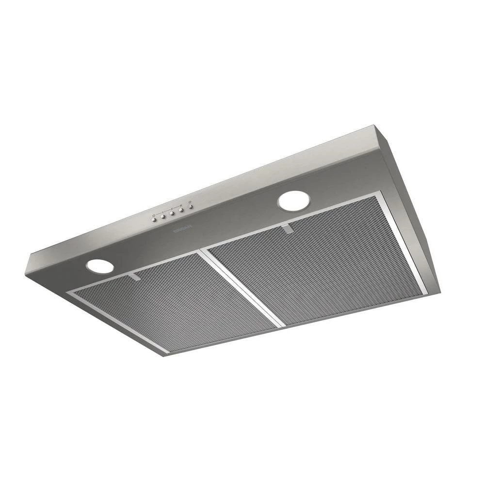 - Hidden louvers on top of hood exhaust away from cabinetry