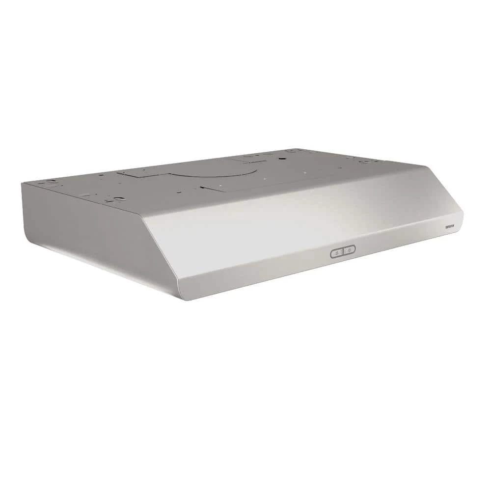 Sahale BKDEG1 is a 30 in. under-cabinet convertible range hood in stainless steel finish that combines refined lines with a slim profile to bring a refreshing change to contemporary kitchens. Equipped with the exclusive Broan Captur system, which combines advanced blower design with new filter technology, this 300 CFM-rated hood provides 98.1% removal of smoke and odor to protect your home and family from airborne pollutants caused from cooking. The quiet-running Sahale is also designed with smooth flow technology, which streamlines the path of air for improved efficiency and noise reduction. Tap-touch electronic controls operate the 3 fan speeds and ENERGY STAR-qualified LED lighting system. Using the included EZ1 system, Sahale can easily be installed by one person in up to half the time of a standard install.