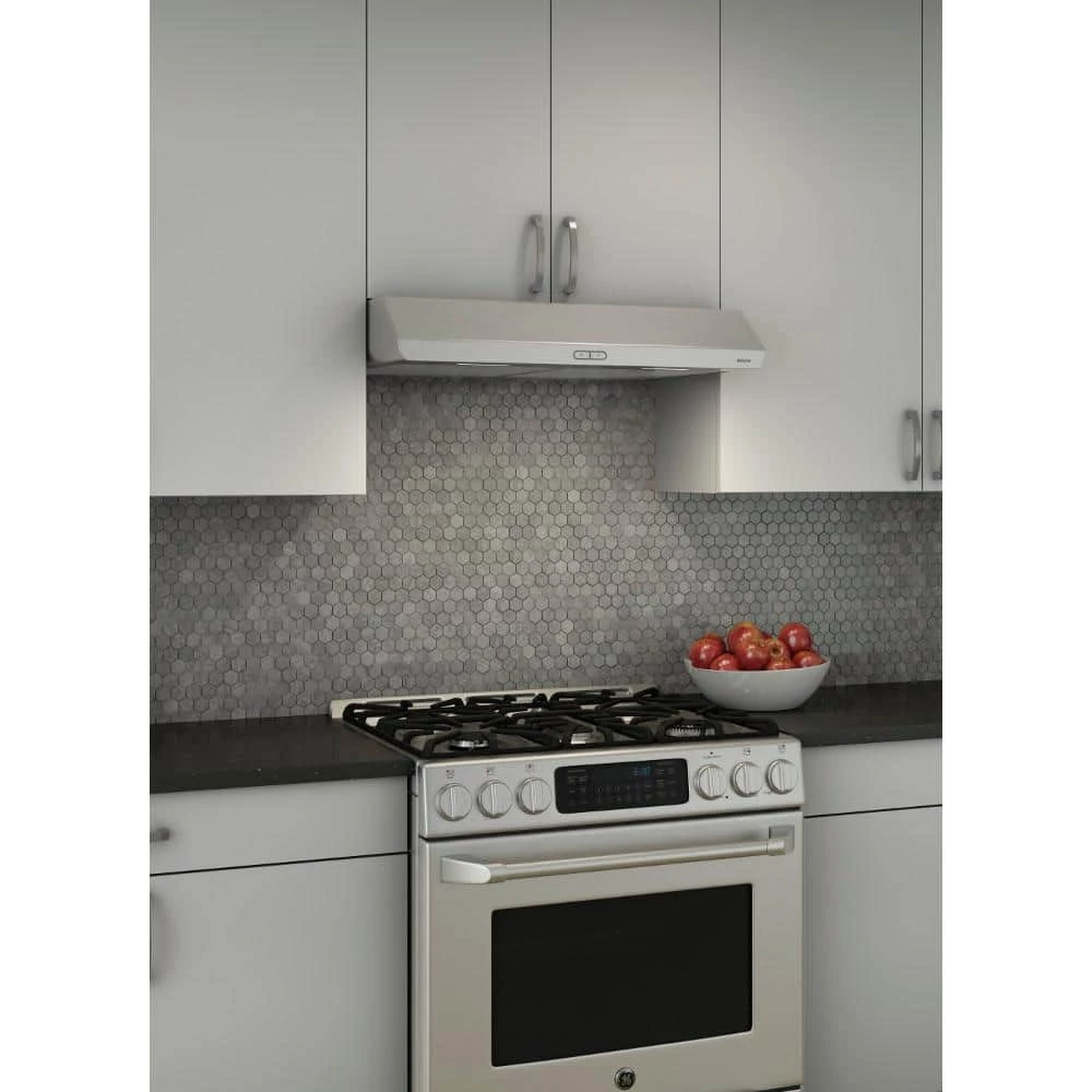 - Slim and refined lines in an under-cabinet convertible range hood for a refreshing change in today’s kitchens
