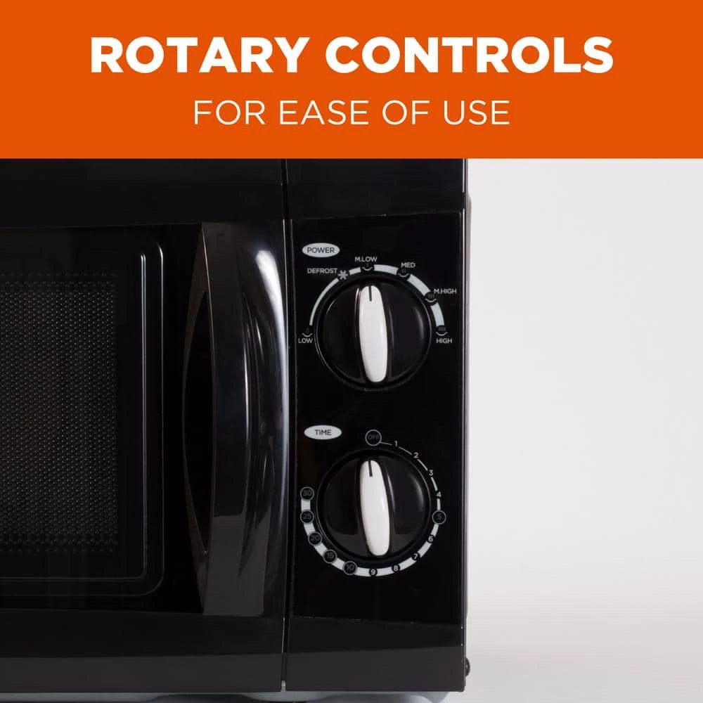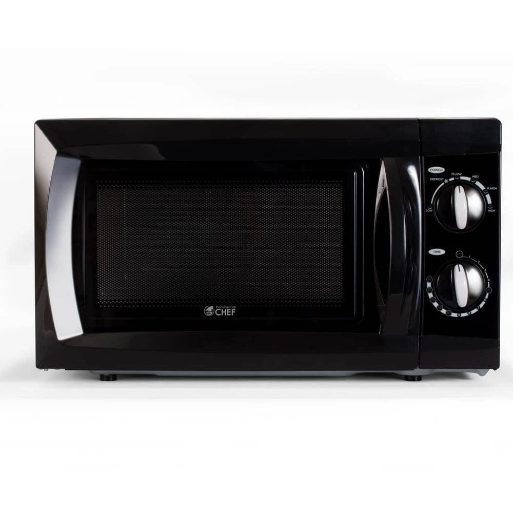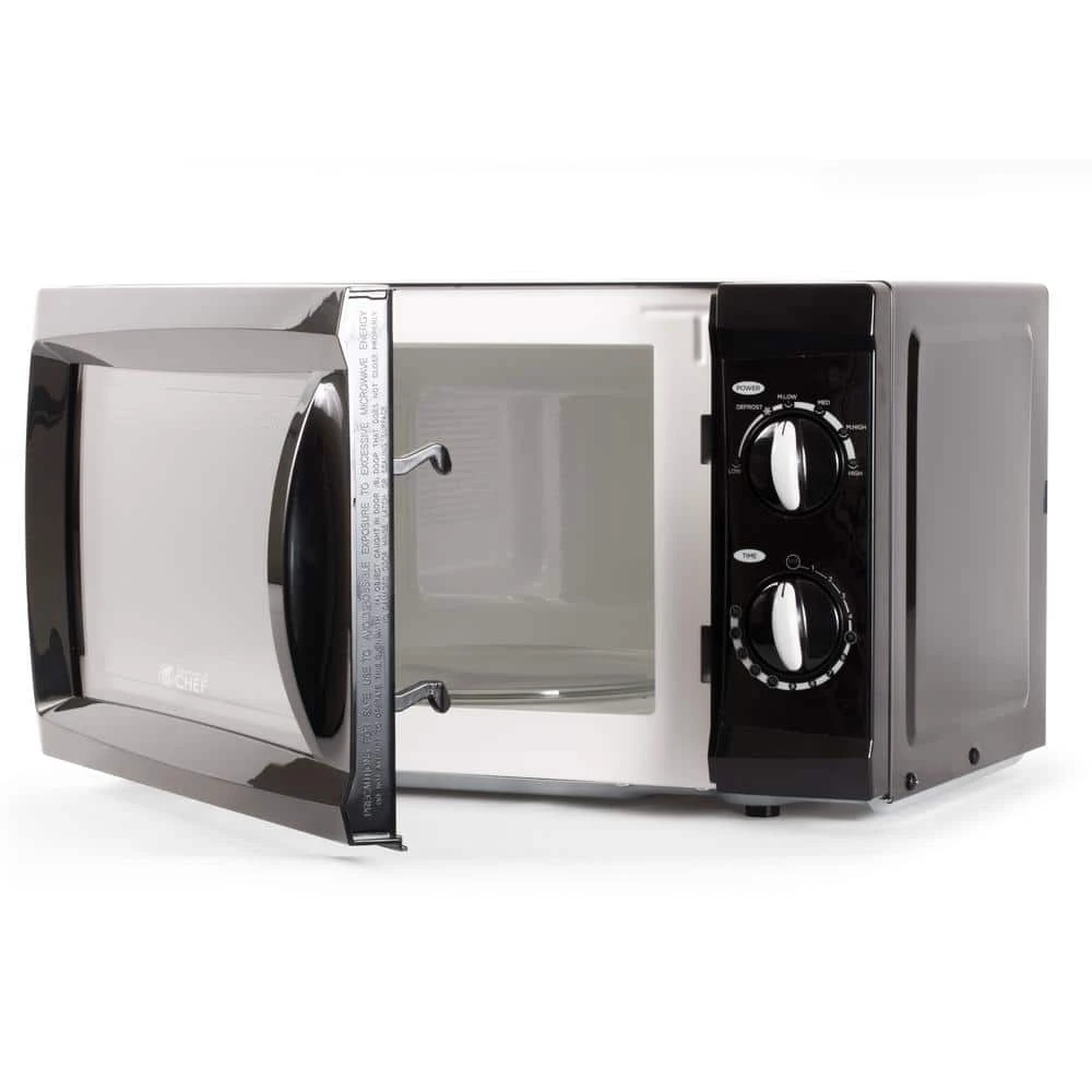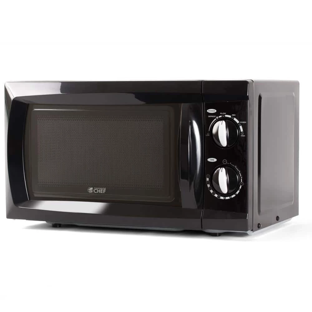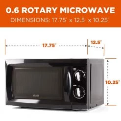 With this Commercial CHEF microwave oven you get 600-Watt of cooking power and a 0.6 cu. ft. interior. Easy to use mechanical dials allow you to set the timer that ranges from 1 to 30 minutes and to Select from among the six cooking power levels. Great for anyone living with in a small area like a dorm or apartment as it won’t take up much space but yet still gives the convenience of quickly cooking your food.