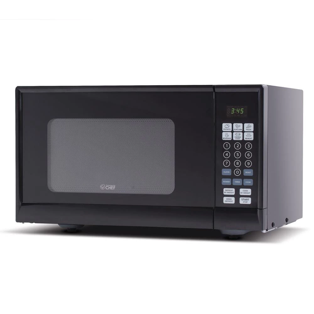 - 6 one-touch quick cook menu buttons: popcorn, baked potato, pizza, beverage, reheat, frozen dinner