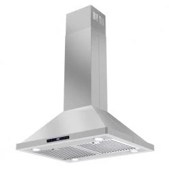 Presenting the newest addition to the Cosmo line of stylish professional filtering systems. This 30 in. stainless steel Island Range Hood kitchen hood is in a class of its own. Coveted by kitchen design experts for its sophistication and ultra-modern aesthetic that seamlessly complement a variety of kitchen designs. Its modern features include commercial grade 430 stainless steel and a 380 CFM centrifugal motor dedicated to ridding your house of lingering aromas. Dishwasher-safe premium stainless steel baffle filters to trap grease and oil. 4 x 2W LED lighting to illuminate your cook top. Includes 3-prong power plug for easy use.
