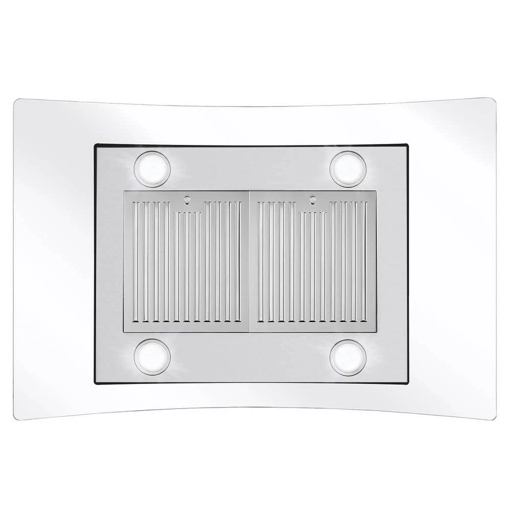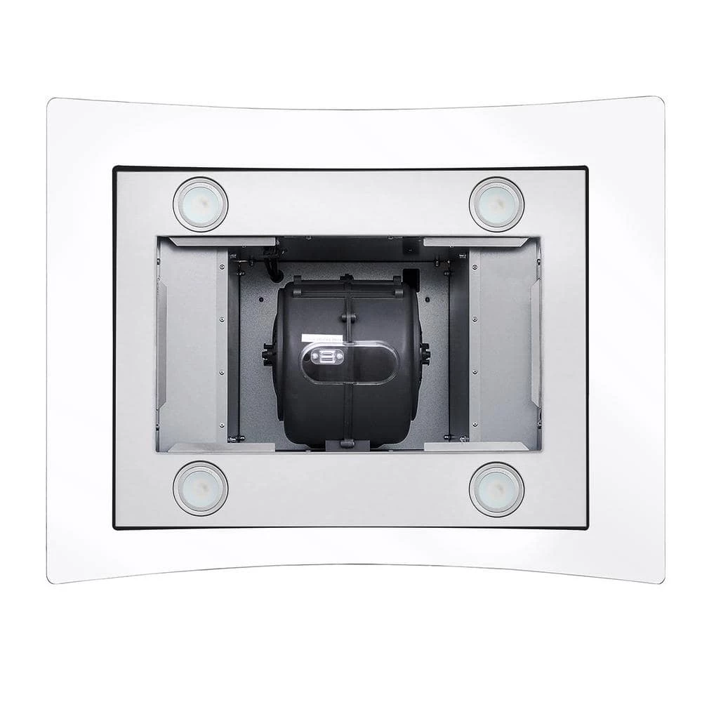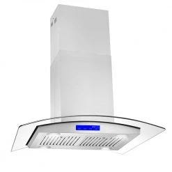 Cosmo presents a beautiful Italian-style designer range hood kitchen hood that’s truly in a class of its own. With details like a sleek brushed stainless steel body and a tempered glass visor, this island range hood is coveted by kitchen design experts for its sophisticated, ultra-modern aesthetic. This island range hood brings modern features into your kitchen, with high-lumen LED lighting, digital touch controls, including 3 fan speeds, a clock and timer, and a heavy duty 380 CFM motor that pulls lingering grease and odors from your house with ease. Premium stainless steel ARC-FLOW permanent filters make maintenance a breeze, simply drop the filters in the dishwasher, no replacement required.