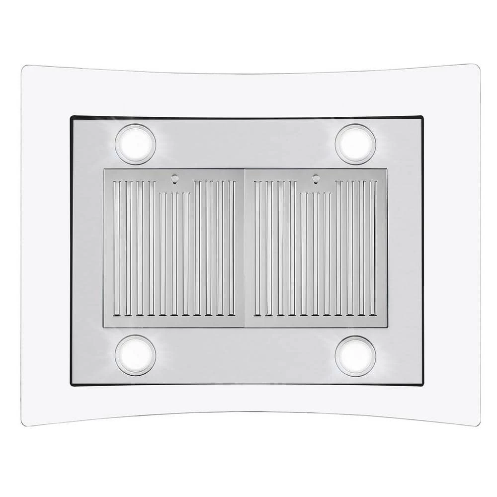 Cosmo presents a beautiful designer Italian style ductless Island Range Hood kitchen hood is in a class of its own, with details like a reflective stainless steel body combined with a tempered glass visor. Coveted by kitchen design experts for its sophistication and ultra-modern aesthetic that seamlessly complement a variety of kitchen designs. Modern features, including commercial grade 430 stainless steel and 380 CFM centrifugal motor dedicated to ridding your house of lingering aromas. Premium stainless steel ARC FLOW permanent filters that are dishwasher-safe and extremely durable. No need to replace these filters, simply drop them in the dishwasher for easy maintenance. Our island range hood is both energy efficient and quiet. Utilizing high lumen LED lighting for year round cost savings.