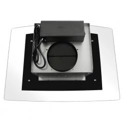 - Ductless island range hood exhaust opening uses 6 in. round duct, backdraft damper is included to prevent air coming back inside