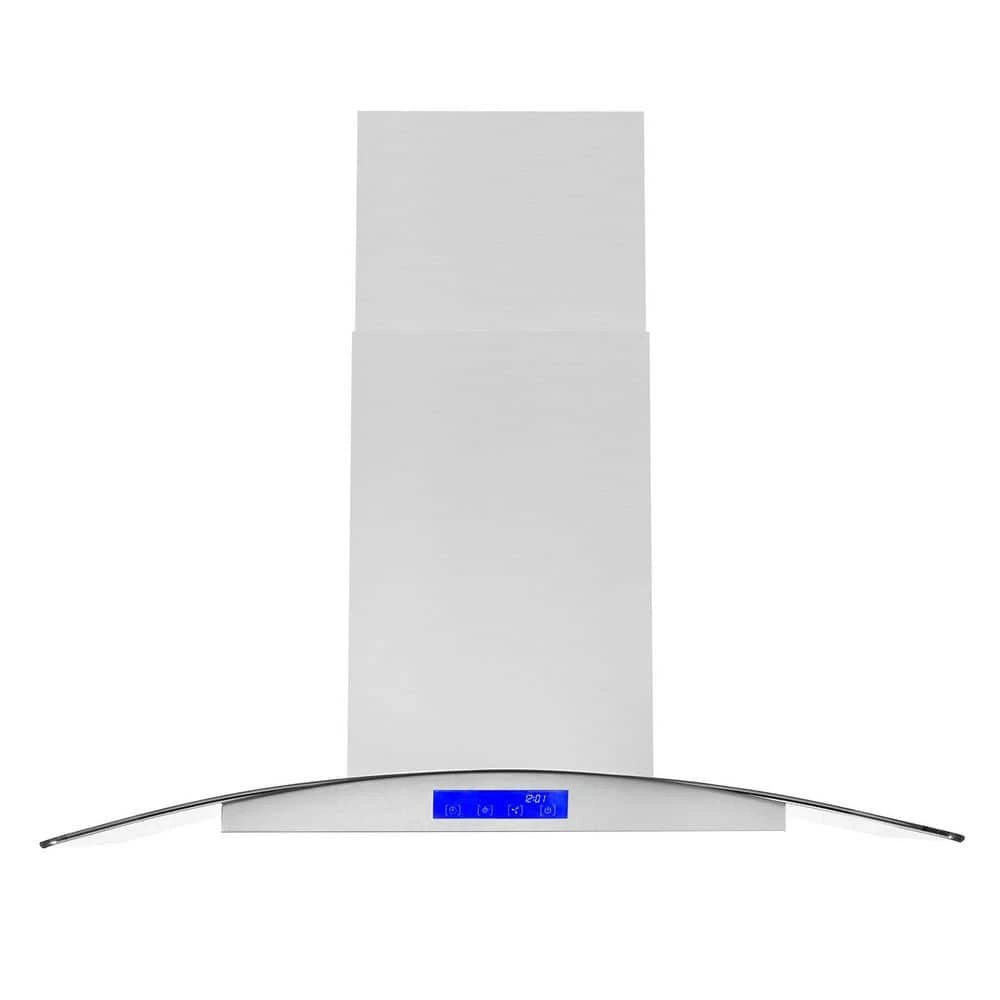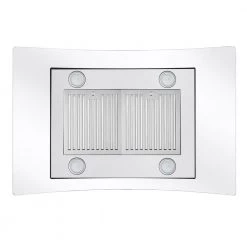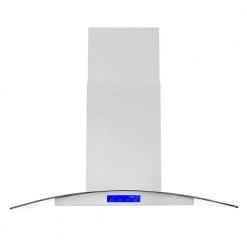 Cosmo presents this beautiful, designer Italian-style 36 in. range hood kitchen hood that is truly in a class of its own. Featuring modern details, like a sleek, reflective stainless steel body, and a curved tempered glass visor, this island range hood brings a touch of sophistication to your kitchen while seamlessly complimenting a variety of decor. This island range hood isn’t just another pretty face, however, with commercial grade construction and a 380 CFM blower motor that is dedicated to quickly ridding your house of smoke, grease and cooking odors. You’ll love the stainless steel ARC-FLOW permanent baffle filters for ease of upkeep- there’s no need to periodically replace your filters, simply drop them in the dishwasher for easy maintenance. Our island range hood also features 4 energy efficient bright white LED lights so you can see clearly while cooking. This 36 in. range hood is backed by a 3 year limited warranty.