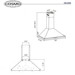 Make a style statement as you quickly clear the air of grease, smoke and odor to keep your home fresh and odor free with Cosmo’s COS-63190 modern canopy wall mount range hood kitchen hood. Experience premium brushed stainless steel built to withstand high heat, grease, oil and steam. Thick stainless is used all around to fight against accidental bumps and dents. Our wall mount range hood includes a seamless chimney set on all three sides for cleaner lines. Cook without unwanted odors and harmful air pollutants from disturbing your home. Contemporary styling is used for modern kitchen decors and an upscale luxury feel. Trust Cosmo for your next kitchen appliance.