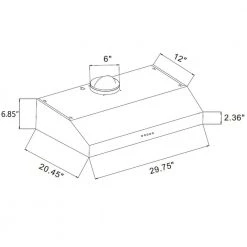 - Range hood dimensions: 29.75 in. W x 20.45 in. D x 6.85 in. H, duct diameter: 6 in. round