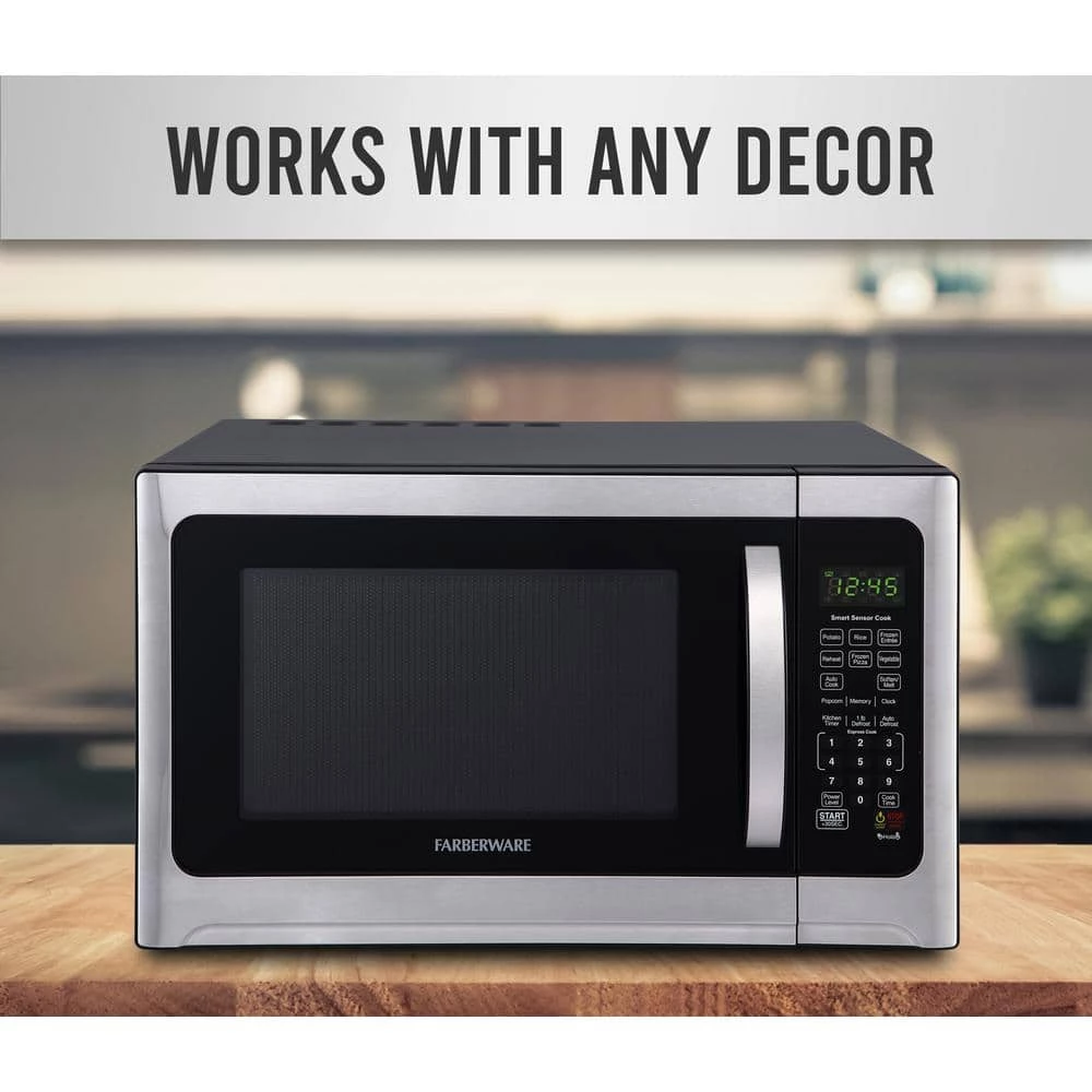 The Farberware Professional 1.2 cu. ft. Microwave Oven is the ideal anywhere you need it solution for home or at work. It offers 1100-Watt of output power for full-sized cooking that fits in a compact space. Whether you’re defrosting, reheating, cooking or snacking the 10 Power Levels, multi-stage cooking and 7 One touch cooking programs simplify every task.