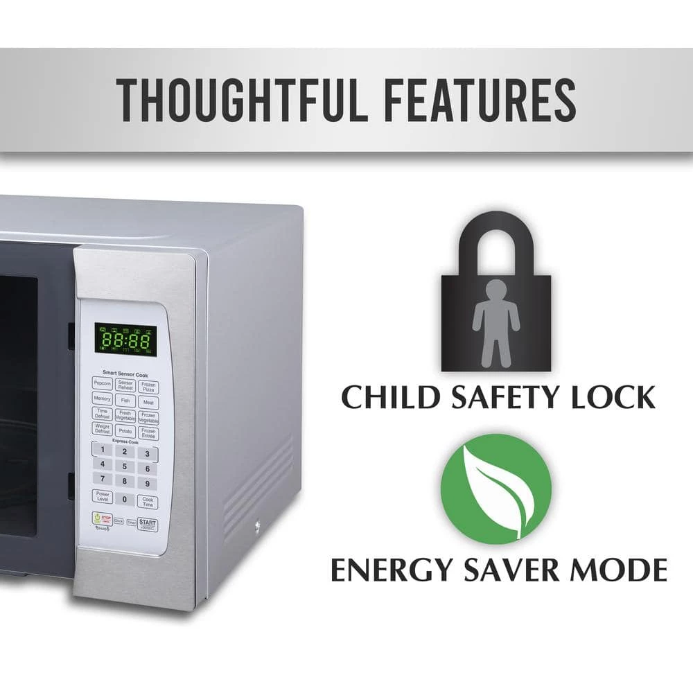 - SPACIOUS & STYLISH: With 1.3-cu. ft. of cooking capacity, a sleek brushed stainless steel exterior and 10 power levels, this counter top microwave delivers power, style, and convenience to any kitchen