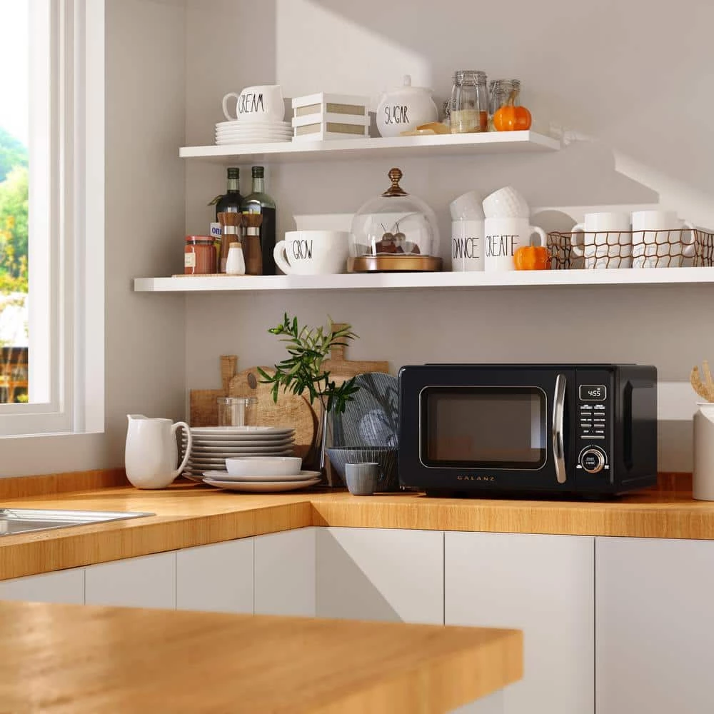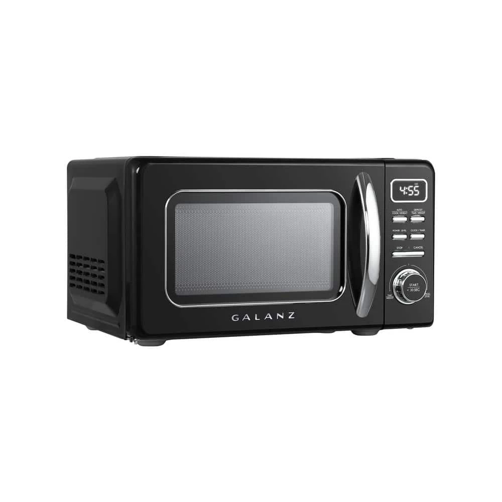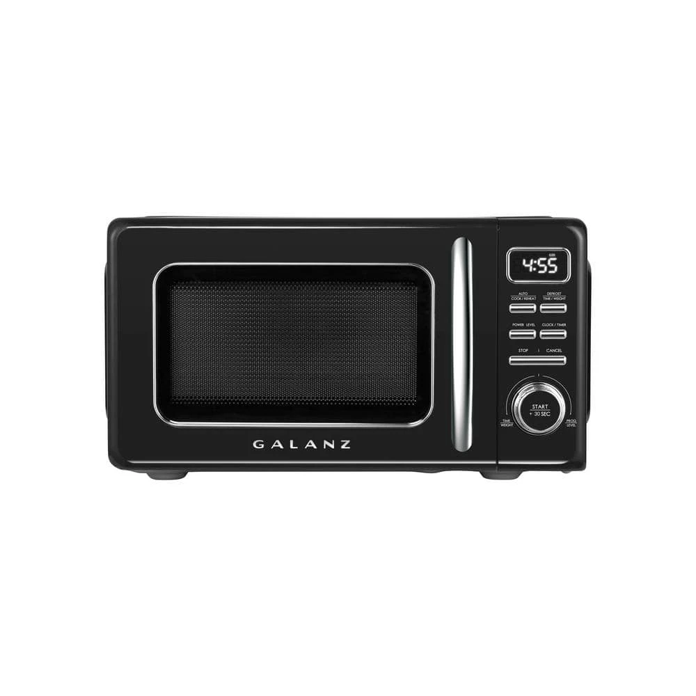 The Galanz Retro Countertop Microwave Oven makes cooking and reheating meals or beverages simple, quick, and convenient while adding a fun and stylish addition to any kitchen, rec room, home office or dorm room. Defrost any of your frozen foods by either weight or time; Also includes a quick start, plus 30 seconds button for when you need additional cooking time for your meal. LED Display and easy to use push buttons include 7 Auto Cooking programs and 10 Auto Reheat Programs making cooking and reheating meals and beverages simple, quick, easy and convenient. Removable for easy clean up, the Galanz Retro Countertop Microwave Oven includes a 10.5 in. glass turntable that rotates 360° for even and efficient cooking. Vintage and retro look will accentuate any space. Mix and match with the other retro appliances from Galanz like the toaster oven, freezer, and refrigeration pieces. The compact size is perfect for apartments, kitchenettes, dorms, and other small kitchen spaces.