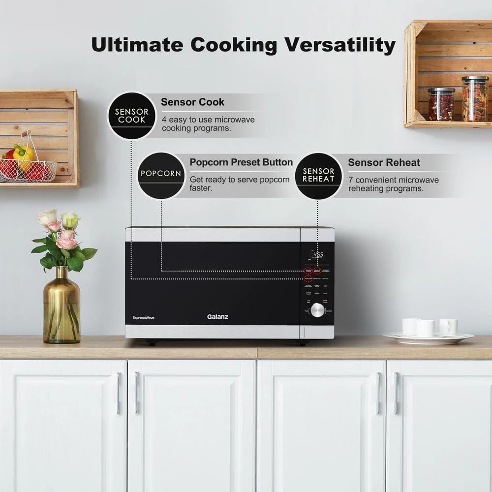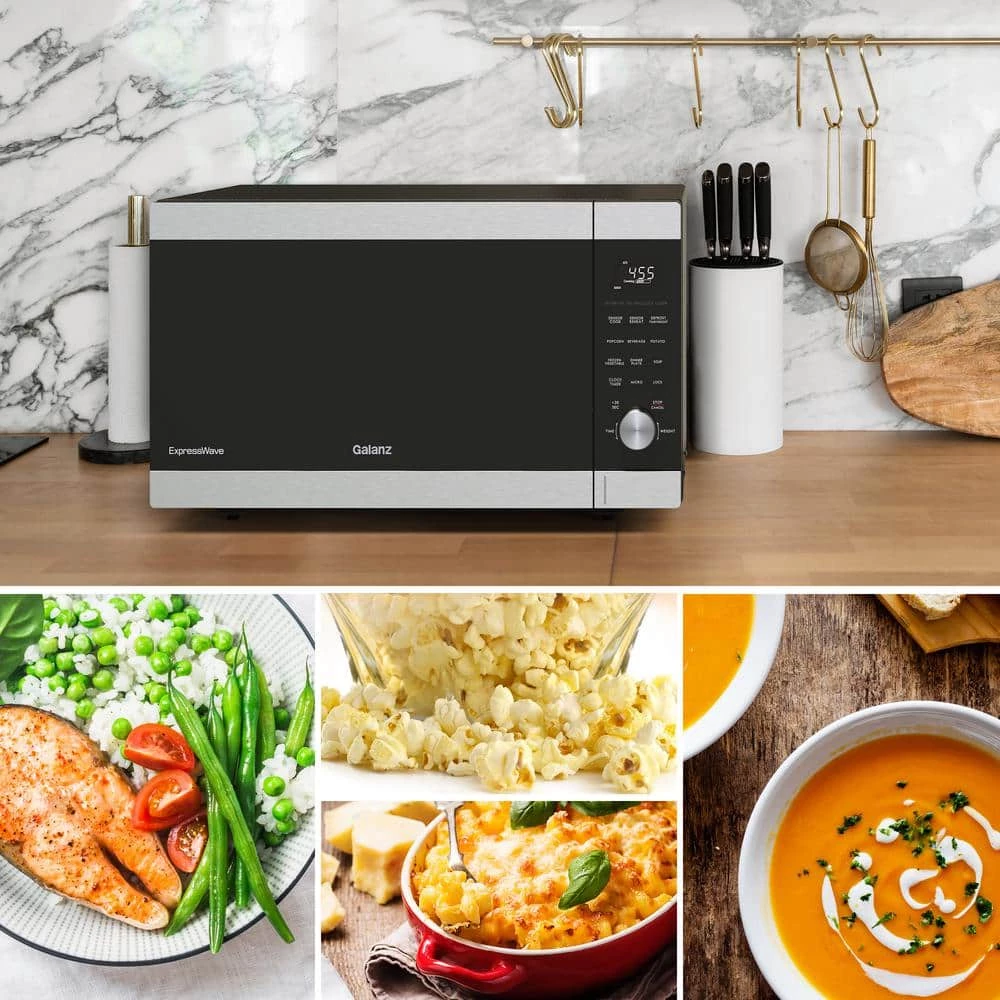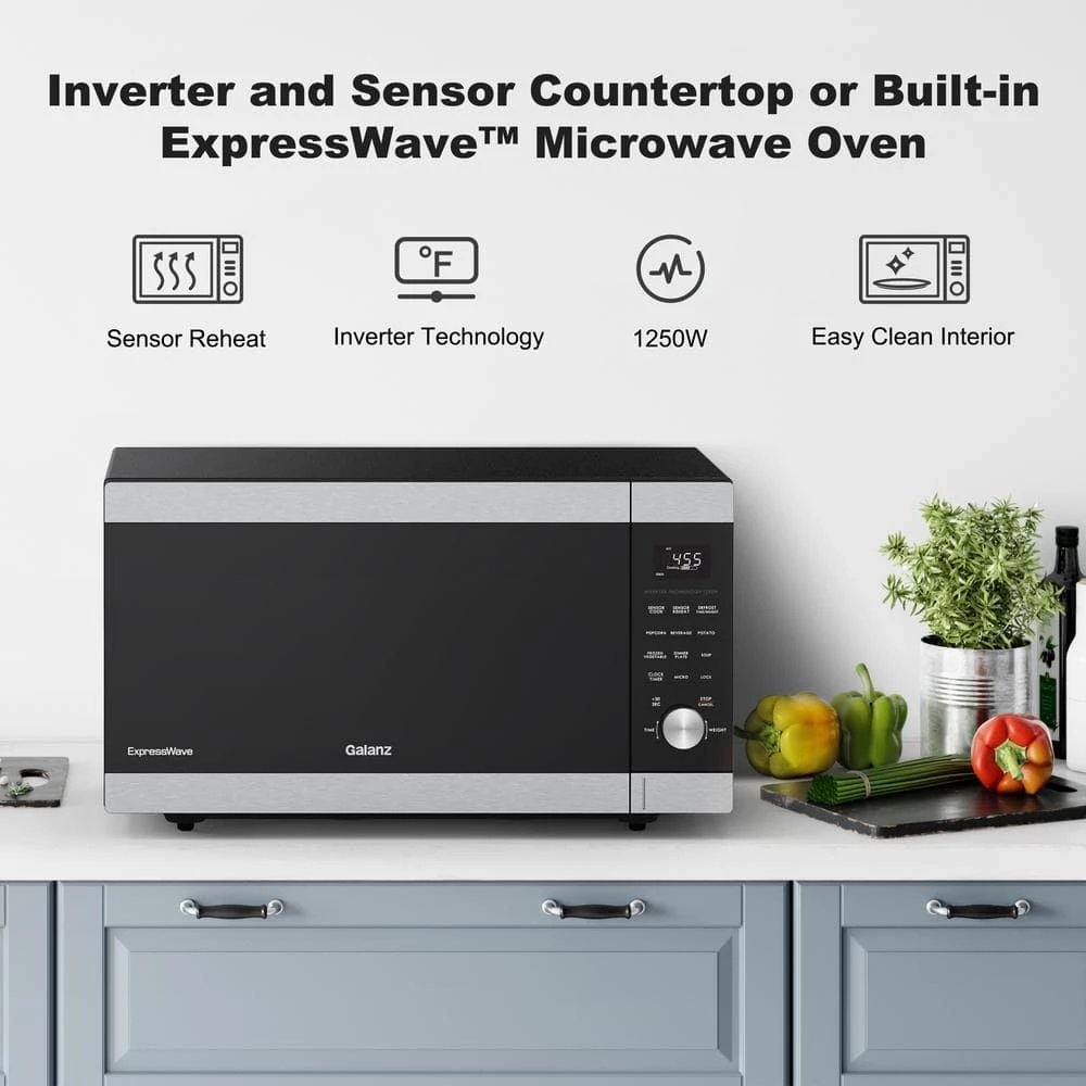 Galanz thoughtful engineering brings you ExpressWave with Inverter technology for faster cooking, reheating, and defrosting. This 1250-Watt Microwave Oven with Sensor Cooking and Sensor Reheating features as well as a unique Express Cooking Knob that makes everything faster and easier to use. It’s the perfect microwave oven for cooking faster everyday meals as well as gourmet cooking.