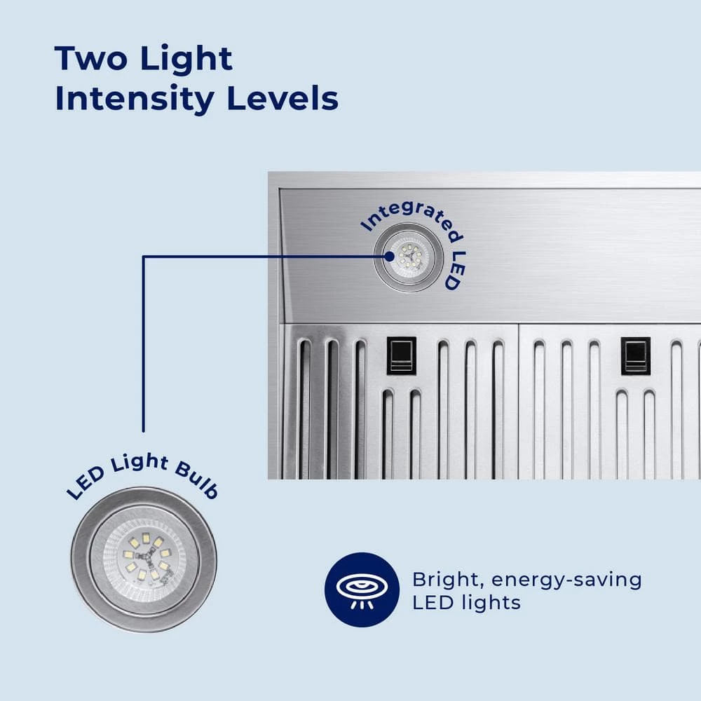 This workhorse of a vent hood allows you to customize your performance and lighting. Select from 3 variable speed settings for the exhaust fan and 2 lighting options with LED bulbs. The slim profile makes it an easy fit for 30 in. standard cabinets as well as compact spaces. Whether you’re whipping up your favorite meal in a large, open-concept kitchen or cozy apartment-style kitchen, you’ll love the ventilation this 30 in. range hood provides. The delayed auto-shutoff function ensures that your kitchen is always well ventilated while giving you more time to savor your latest dish.