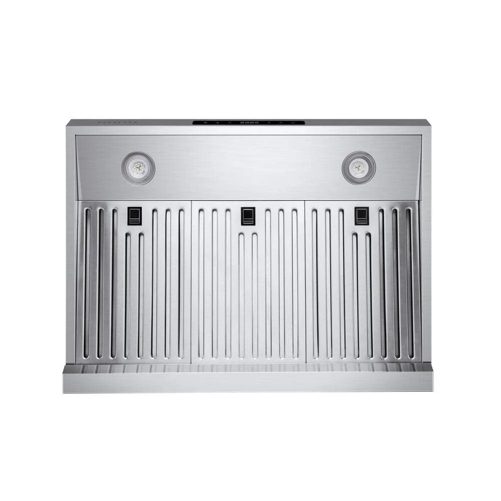 - Includes: dishwasher-safe baffle filters, stainless steel oil tray, and 6 in. round exhaust adapter