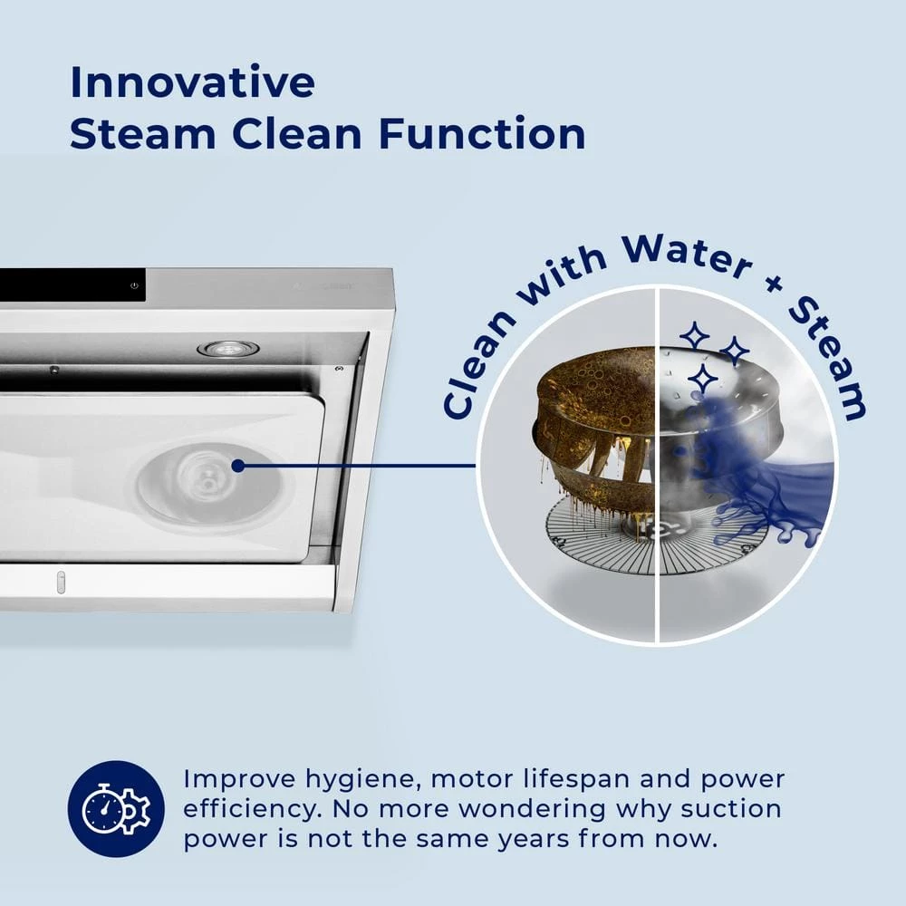 - Innovative steam clean function dissolves even the toughest caked-on grease and extends the life of the motor, no water line required