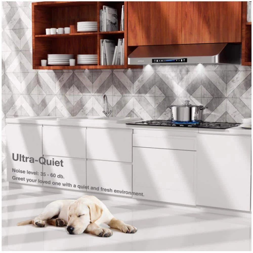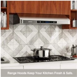 - High-performance 4-speed motor effortlessly and quietly ventilates your kitchen to remove cooking odors and smoke