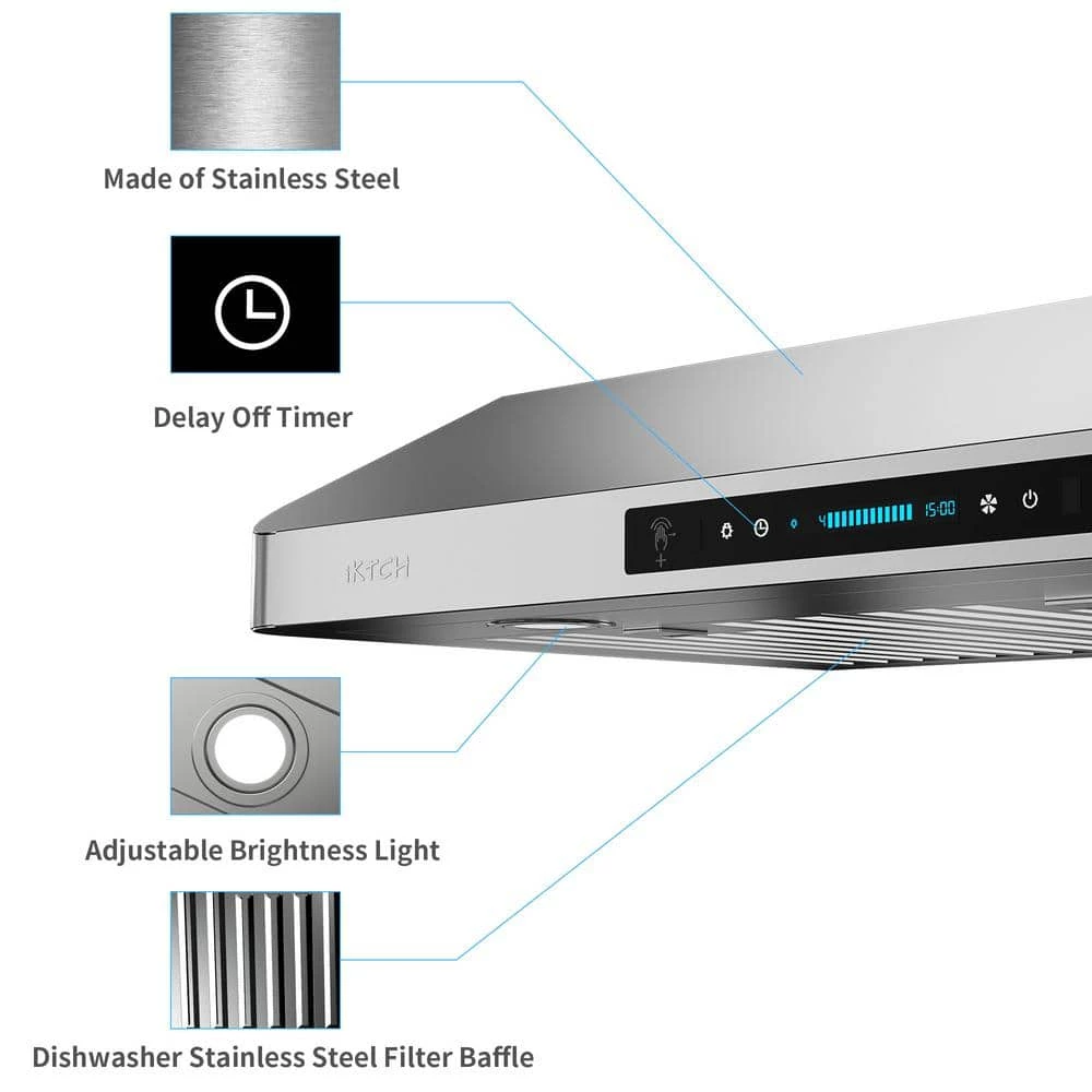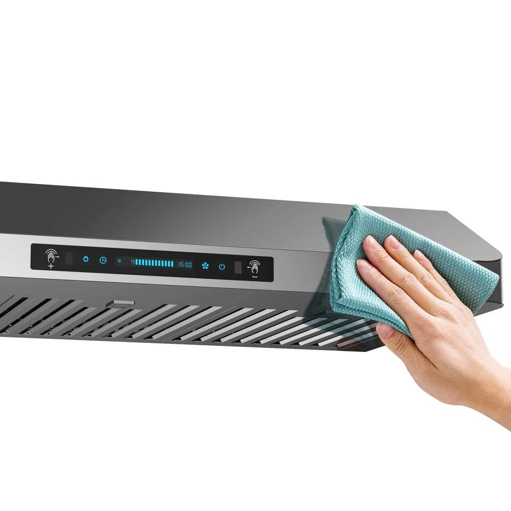 The 36 in. Under Cabinet range hood is equipped with a powerful motor, has 4-different speeds, and the maximum airflow is 900 CFM, which can quickly remove the cooking fumes and harmful substances, thereby reducing the damage to the skin and health. Add a modern look to your kitchen with this slick low profile stainless steel professional range hood while it works efficiently getting rid of greasy smoke and odors. Choose this product and you will get a good helper in the kitchen.