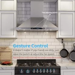 - Biggest feature of this range hood is intelligent gesture control, close to the panel, wave your hand gently, you can control the switch and adjust the wind speed, even if your hands are dirty