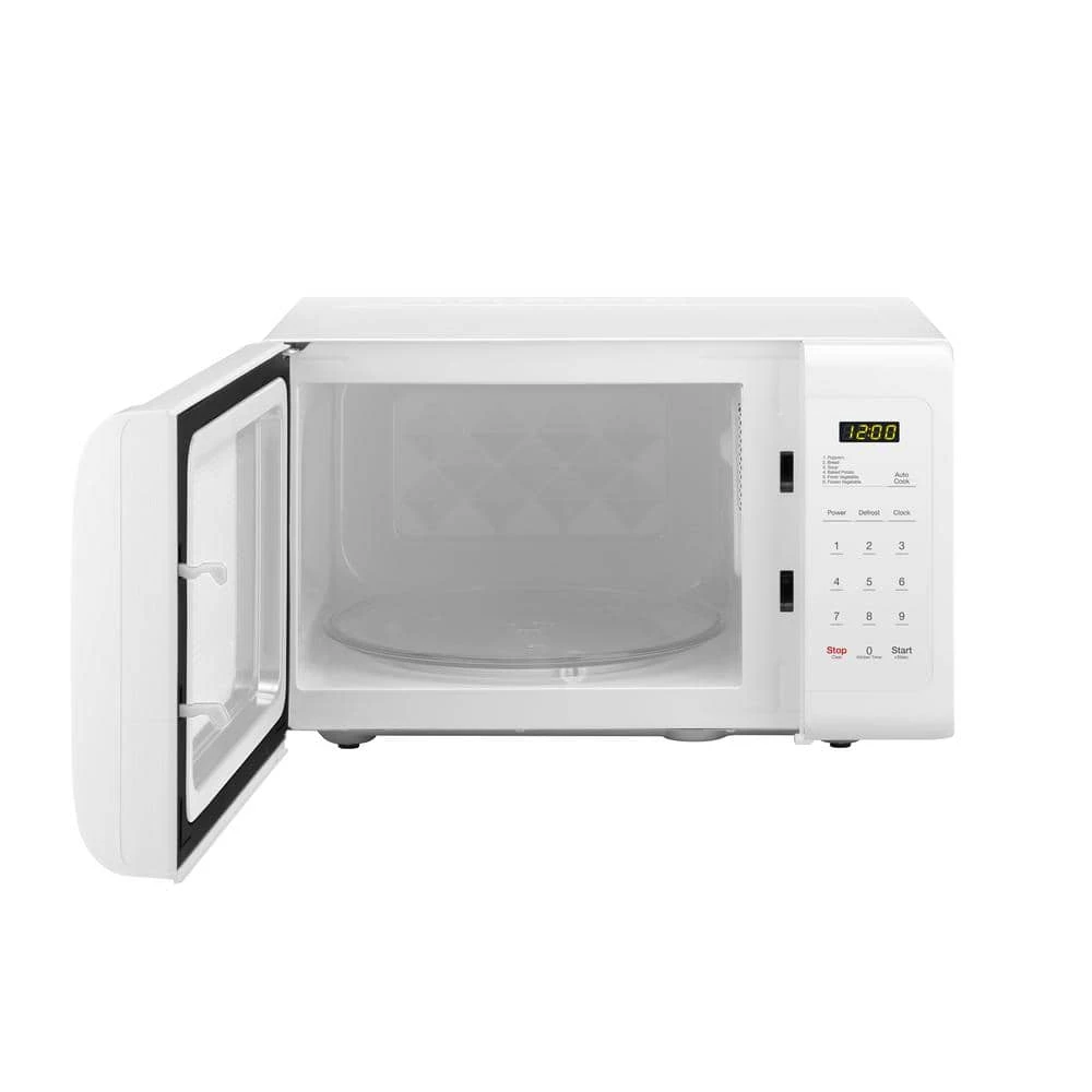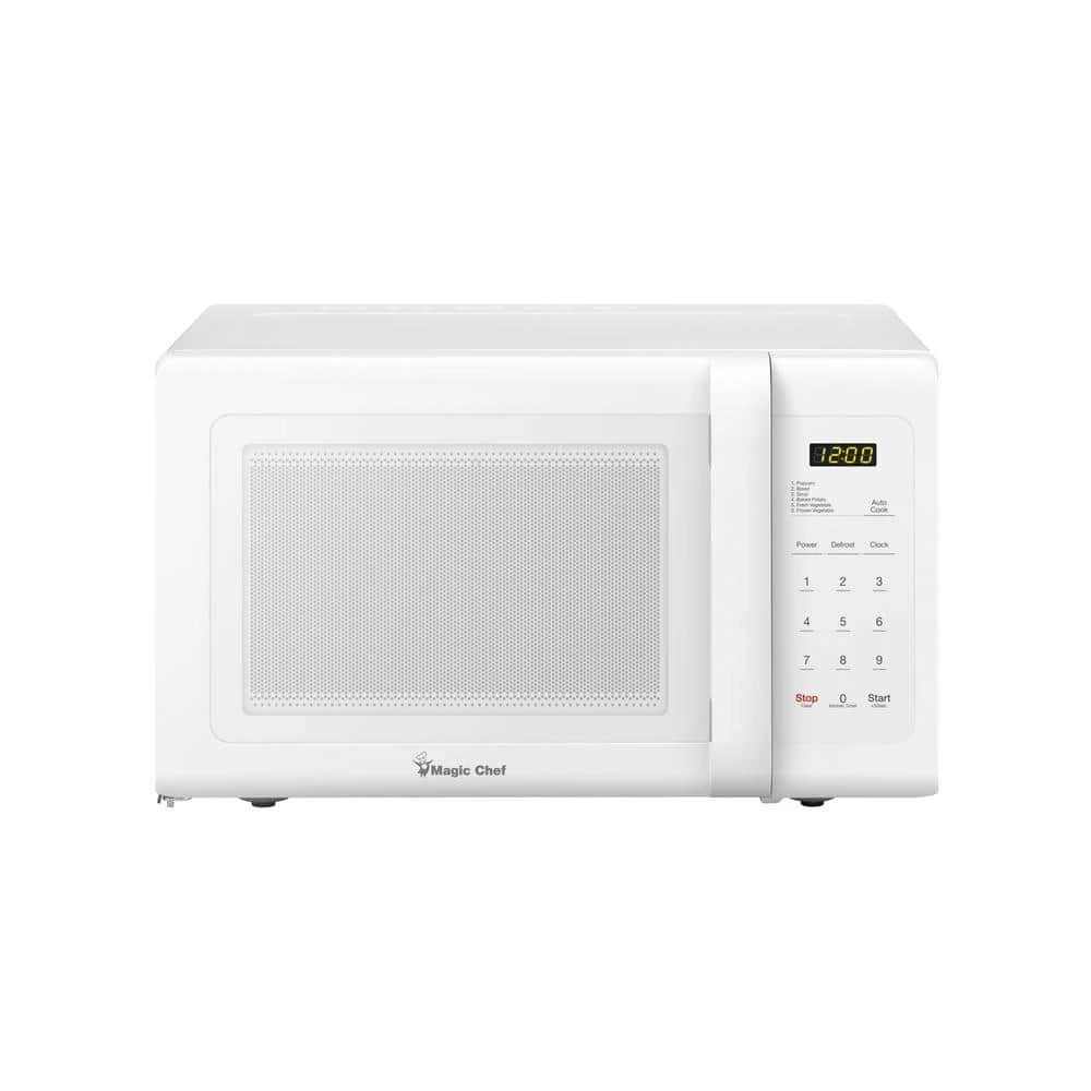 The Magic Chef 0.9 cu. ft. Countertop Microwave has 6 auto cook menus for fast and easy cooking. The 900-Watt microwave has auto defrost options by weight or time. This classic microwave has one-touch presets for popcorn, frozen vegetables. Its glass turntable rotates to help cook your food evenly.