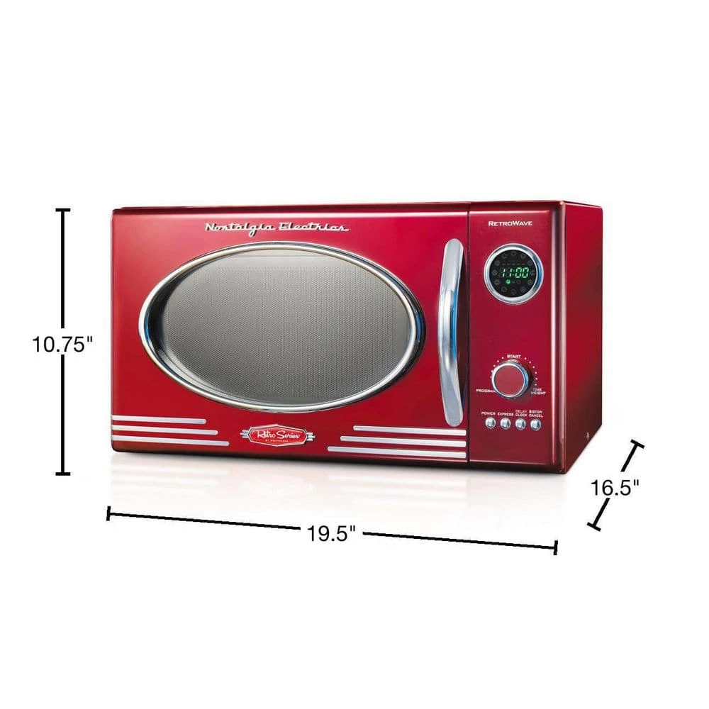 - Sleek chrome door handle, control panel and accents add fun and flair to this unique retro-styled appliance