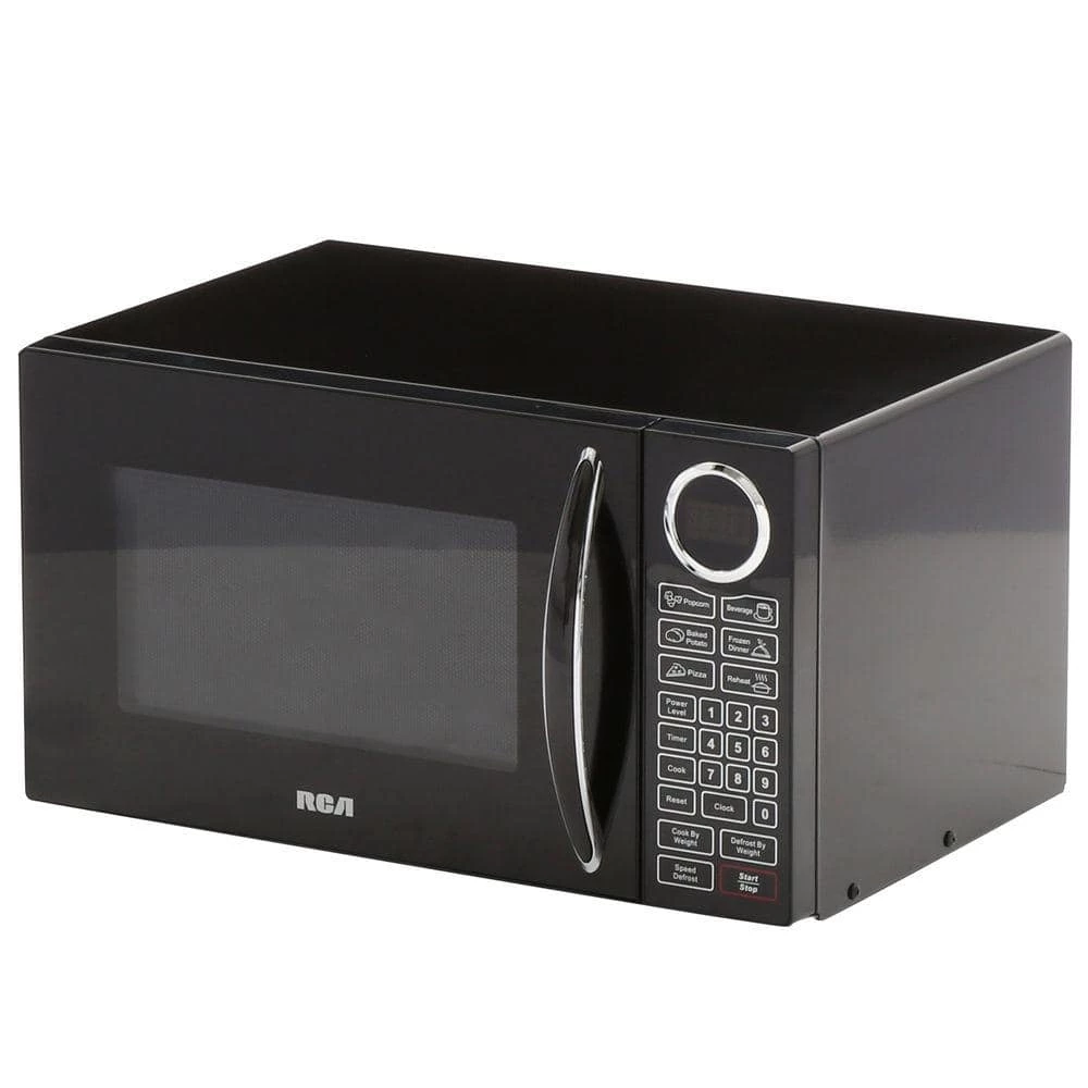 The RCA 0.9 cu. ft. Countertop Microwave is an ideal choice to defrost, cook or reheat your food. Its six 1-touch functions let you prepare an assortment of delicious food items in a spacious .9 cu. ft. capacity, while the 900 watts of cooking power adjust to 10 different power levels. Designed for safe and easy operation, the auto cook microwave includes a removable glass turntable for simple cleaning, as well a child lock-out feature to prevent unauthorized use.
