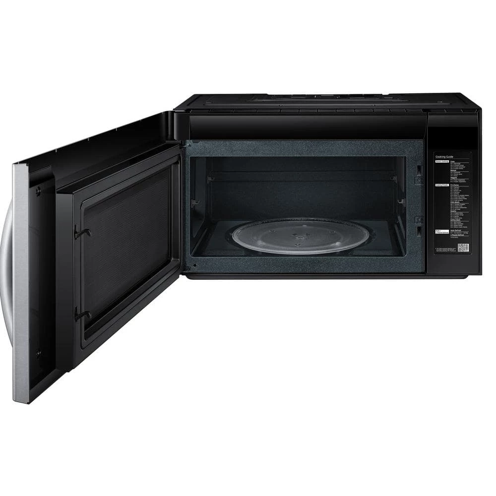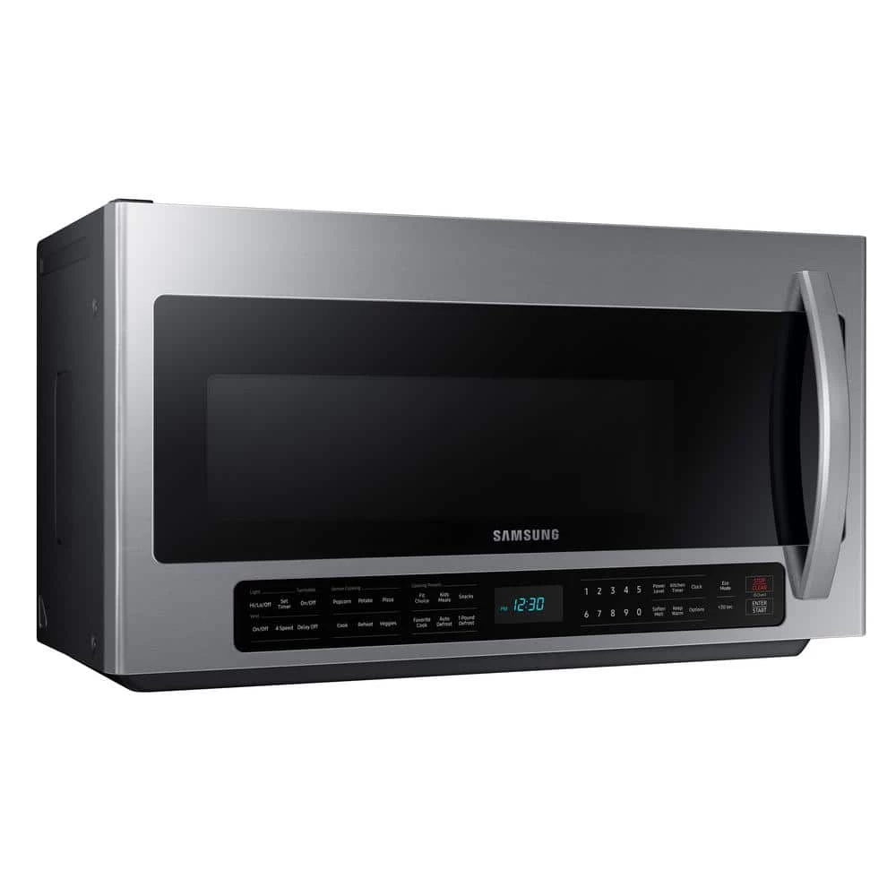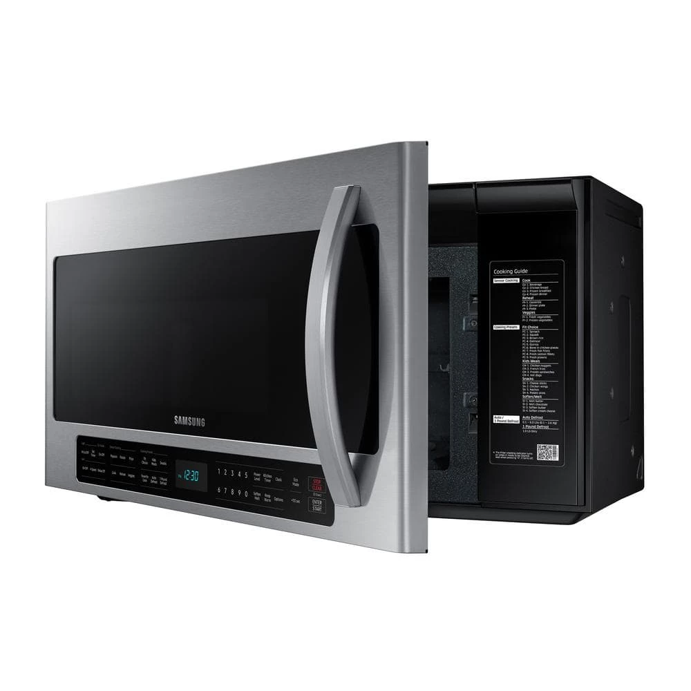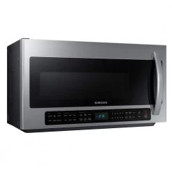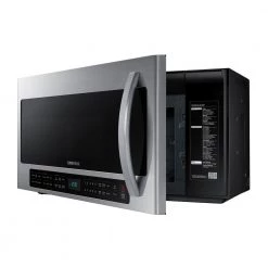 Samsung 2.1 cu. ft. extra large capacity Over-the-Range Microwave makes preparing multiple dishes effortless by accommodating even your biggest dishes. Sensor Cook technology automatically adjusts your cooking time for optimal results. Additionally, the Ceramic Enamel Interior provides a durable, scratch resistant and easy to clean interior, making everyday maintenance simple.