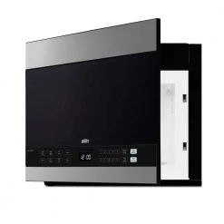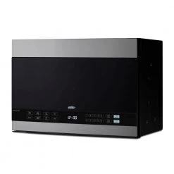 The MHOTR243SS is a 24 in. wide over-the-range microwave designed for simple one-touch cooking and effective ventilation. Its jet black door is accented by real stainless steel trim; a side pocket handle offers a streamlined look to complement any kitchen style. Inside, the MHOTR243SS offers a full 1.4 cu. ft. capacity with an oversized 12.75 in. glass turntable. Ten power levels and multi-stage cooking options allow you to set the proper conditions for virtually every meal. An auto-cooking decal is affixed to the lower cabinet interior for easy reference. The MHOTR243SS also includes a time cook function, timer, and interior light for easy viewing of the interior. The MHOTR243SS is equipped with a versatile ventilation system that can be set up with a vertical duct, horizontal duct, or for recirculating (ductless) operation. An automatic, two-speed exhaust fan assures a smoke and odor-free environment. Two LED lights illuminate your cooking surface, while the child safety lock feature helps prevent unsupervised use by children. Eco Mode is automatically turned on after one minute of inactivity or can be manually adjusted. We include a mounting plate, exhaust adapter for top or rear-venting, and the hardware required for installation, along with an installation booklet and a top cabinet and rear wall template.