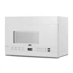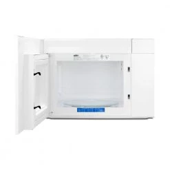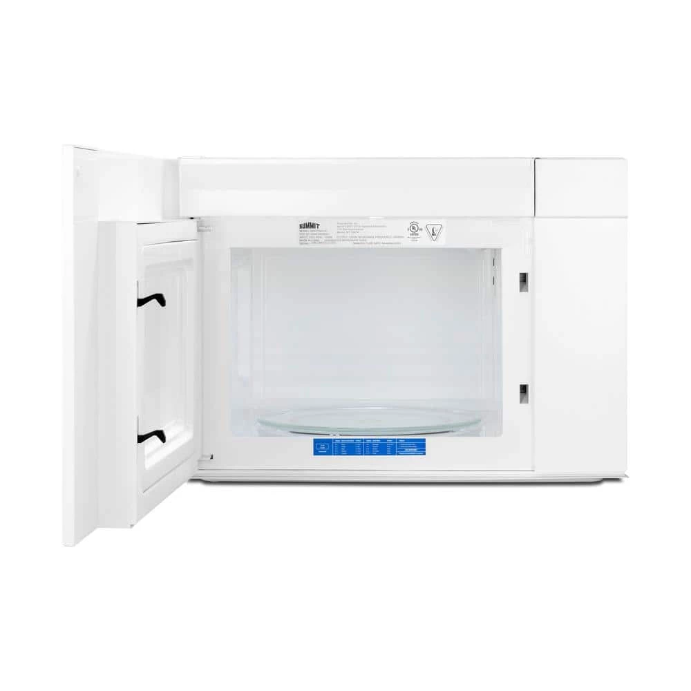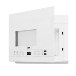 The MHOTR241W is a 24 in. wide over-the-range microwave designed for simple one-touch cooking and effective ventilation. Its all-white exterior and interior makes for easy cleanability; a side pocket handle offers a streamlined look to complement any kitchen style. Inside, the MHOTR241W offers a full 1.4 cu.ft. capacity with an oversized 12.75 in. glass turntable. Ten power levels and multi-stage cooking options allow you to set the proper conditions for virtually every meal. An auto-cooking decal is affixed to the lower cabinet interior for easy reference. The MHOTR241W also includes a time cook function, timer and interior light for easy viewing of the interior. The MHOTR241W is equipped with a versatile ventilation system that can be set up with a vertical duct, horizontal duct or for recirculating (ductless) operation. An automatic, two-speed exhaust fan assures a smoke and odor-free environment. Two LED lights illuminate your cooking surface, while the child safety lock feature helps prevent unsupervised use by children. Eco Mode is automatically turned on after one minute of inactivity or can be manually adjusted. We include a mounting plate, exhaust adapter for top or rear-venting and the hardware required for installation, along with an installation booklet and a top cabinet and rear wall template. Note: This unit features a top vented system that must be clear for proper ventilation. The depth from the rear to the vented area is 17 in.