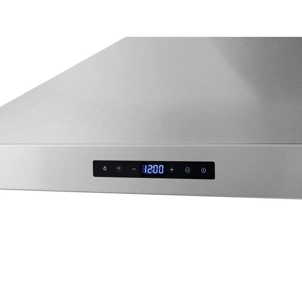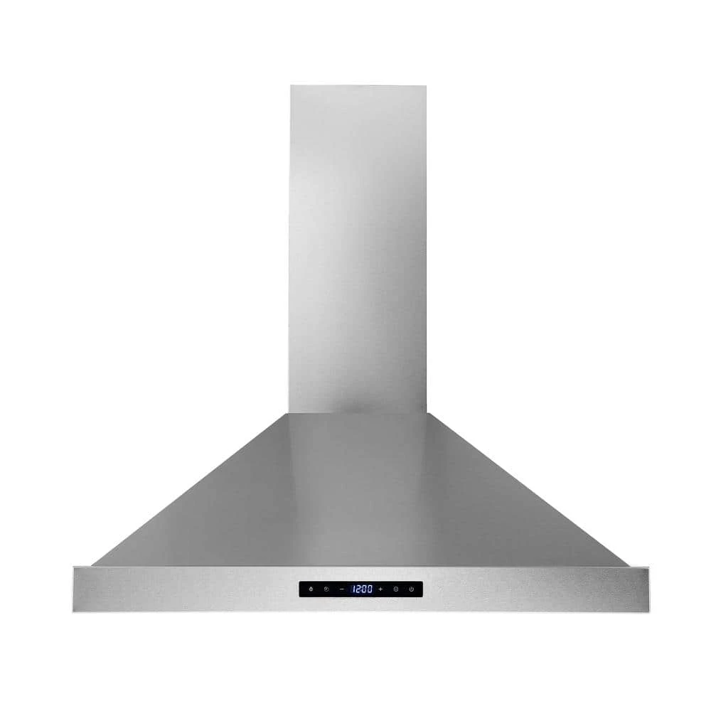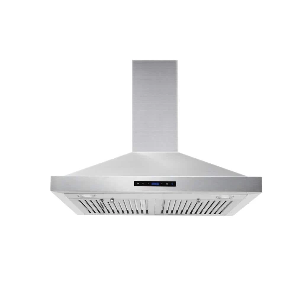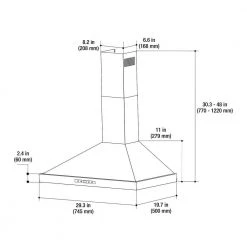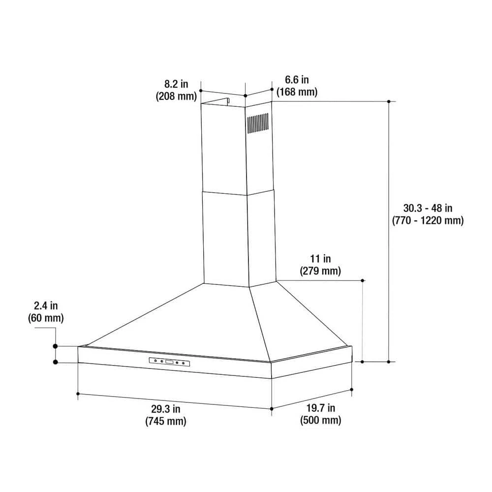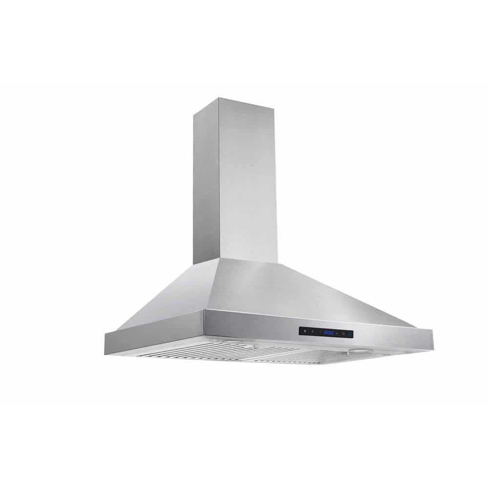 The contemporary styling of this Vissani stainless steel indoor or outdoor vented wall-mounted chimney style range hood is certain to complement any kitchen design. Similarly, the powerful and quiet high performance blower in conjunction with 2 all stainless steel baffle filters is certain to eliminate smoke, grease, and cooking odors with utmost efficiency. 2 energy efficient dual-intensity LED bulbs will illuminate the cooking surface with bright and evenly distributed light. 2 dishwasher-safe, all stainless steel baffle filters fully enclose the bottom to make maintenance as easy as can be. A modern electronic touch panel display with programmable timer and 2 level lighting options will enhance your cooking experience with value-added functionality and convenience.
