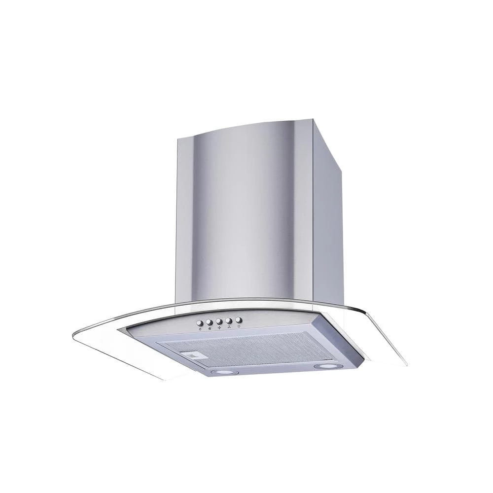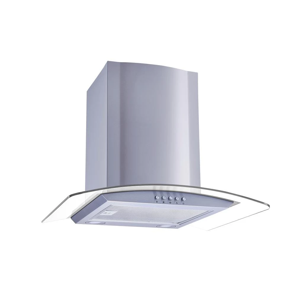 This 30 in. wall mounted range hood is constructed of premium 430 brushed stainless steel and clear tempered glass. Complete with an aluminum mesh filter that remove smoke and grease from your cooking area and is dishwasher safe. This model also comes with 2 bright soft white energy saver LED lights, low noise level operation, 284 CFM air flow, push button control with 3-level fan speed. All the components such as damper, mounting hardware, flexible duct work and damper are included for easy installation. Adjustable and telescoping chimney can fit 7.5 ft. – 8.5 ft. ceiling. This unit is convertible, can be vented out of your dwelling or recirculating (ductless) with charcoal filters (part # WRHF005S2, sold separately).
