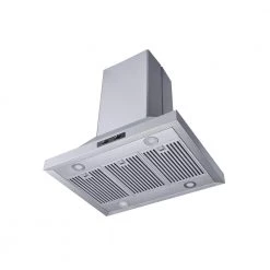 This 30 in. island mounted range hood is constructed of premium 430 stainless steel. Stainless steel baffle filters are dishwasher safe and easy to remove and clean. This model also comes with 4-bright energy saver soft white LED lights, low noise level operation, 286 CFM air flow, easy to operate rocker controls for high and low fan speed and on and off light switch. This range hood comes with all the parts you need for easy installation. Adjustable and telescoping chimney can fit 8 to 9 ft. ceiling. This unit is convertible, can be vented out of your dwelling or recirculating (ductless) with charcoal filters (sold separately, part # WRHF005S2).