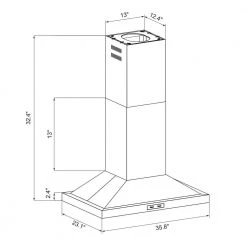 This 36 in. island mounted range hood is constructed of premium 430 stainless steel. Stainless steel baffle filters are dishwasher safe and easy to remove and clean. This model also comes with 4-bright energy saver LED lights, low noise level operation, 286 CFM air flow, easy to operate rocker controls for high and low fan speed and on and off light switch. This range hood comes with all the parts you need for easy installation. Adjustable and telescoping chimney can fit 8 to 9 ft. ceiling. This unit is convertible, can be vented out of your dwelling or recirculating (ductless) with charcoal filters (sold separately, part# WRHF005S2).