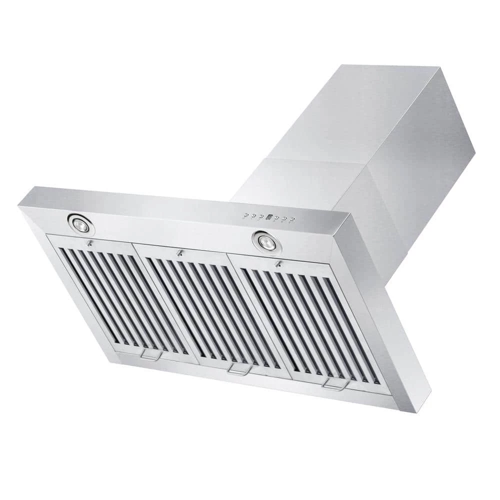 The ZLINE KE-30 is a 30 in. professional wall mount stainless steel range hood with a modern design and built-to-last quality, making it a great addition to any kitchen. This hood’s high-performance, 400 CFM 4-speed motor will provide all the power you need to quietly and efficiently ventilate your stove while cooking. With its classic 430 grade stainless steel, this range hood contains rust, temperature, and corrosion-resistant properties to ensure a durable vent hood that will last for years to come. Enjoy modern features, including built-in LED lighting for an illuminated culinary experience and dishwasher-safe stainless steel baffle filters for easy clean-up. This wall mount range hood has a convertible vent, so you can have a luxury range hood whether you need a ducted or ductless option. Enjoy easy installation and an easy recirculating conversion process. Experience Attainable Luxury in the heart of your home, with a ZLINE range hood. ZLINE Kitchen and Bath stands by all products with its manufacturer parts warranty. The KE-30 ships next business day when in stock.