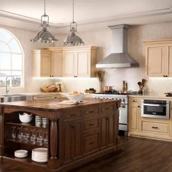 - Fixed vent with ductwork that easily connects to the top of the range hood for external venting